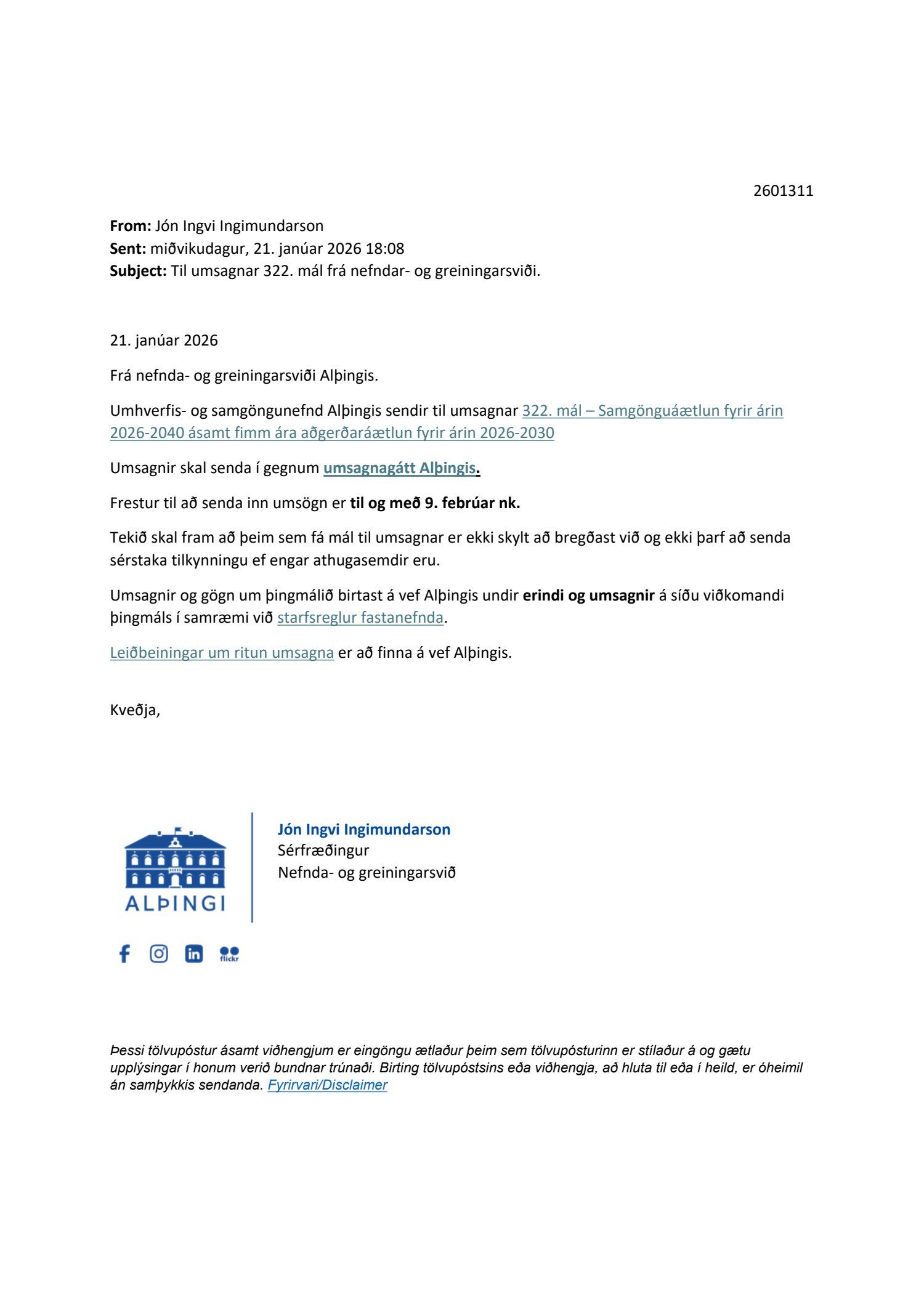 Einnig bendir bæjarráð á mikilvægi þess að fjármagn til framkvæmda við stækkun hafnarinnar í Þorlákshöfn sé tryggt áfram á næstu árum en ekki frestað til ársins 2029. Uppbygging hafnarinnar er ekki bara mikilvæg uppbyggingu og starfsemi á Suðurlandi heldur Íslandi sem heild. Tryggir m.a. öflugri sjóflutninga, bætta samkeppni og með því uppbyggingu atvinnulífs á landsbyggðinni. Samþykkt