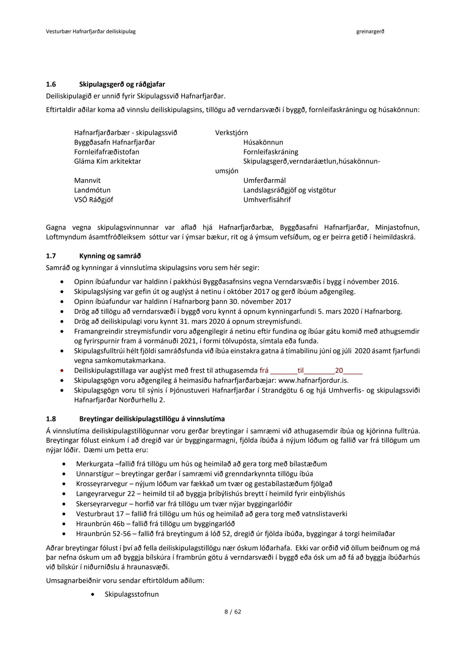 Lögð fram að nýju tillaga að deiliskipulagi ásamt greinargerð fyrir vesturbæ Hafnarfjarðar. Deiliskipulagstillagan hefur áhrif á mörk aðliggjandi deiliskipulaga og verða þau leiðrétt samhliða. Þar sem tillagan gengur yfir eldri deiliskipulög, verða þau felld úr gildi. Auk þess er lögð fram tillaga að verndarsvæði í byggð ásamt húsakönnun.