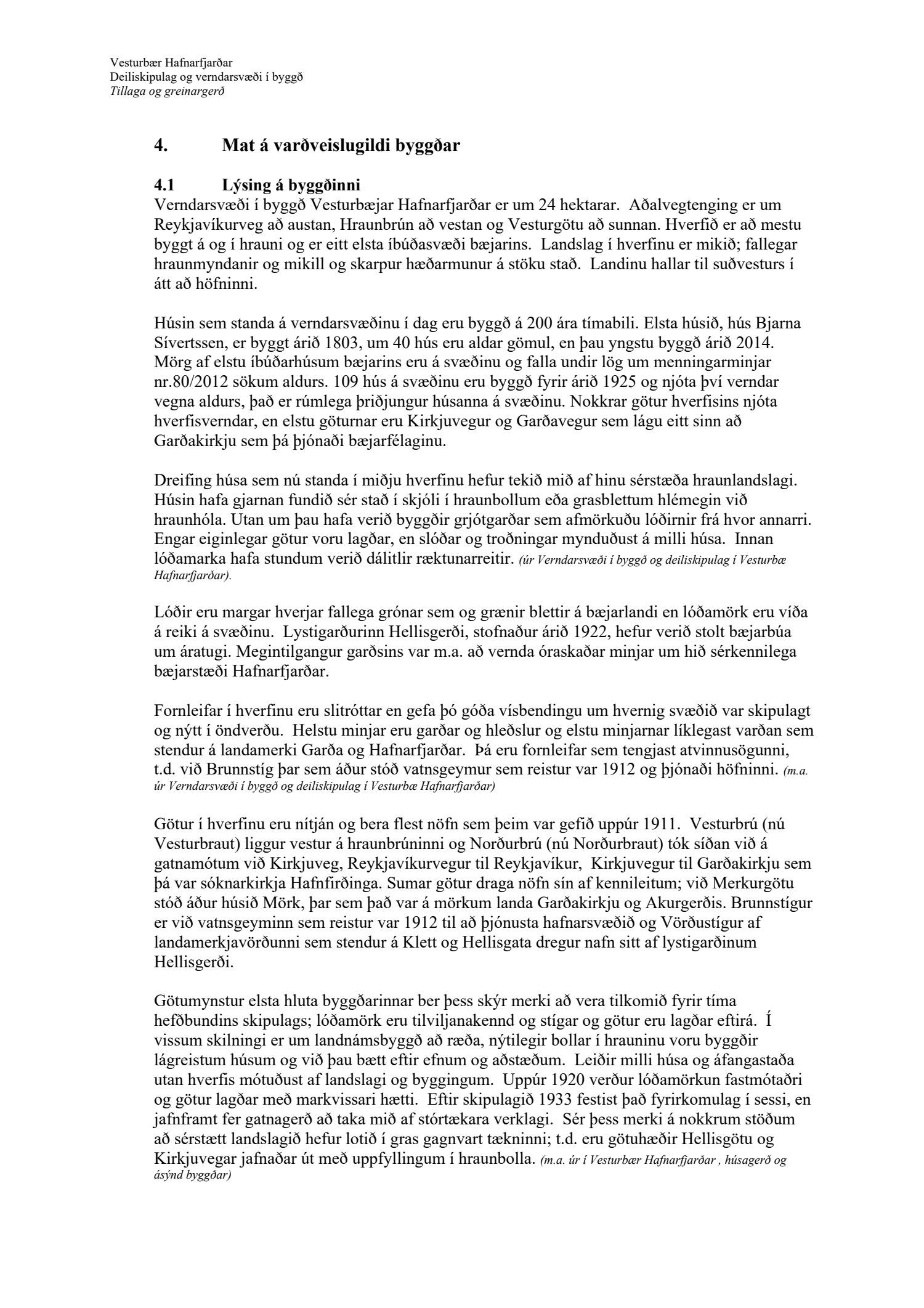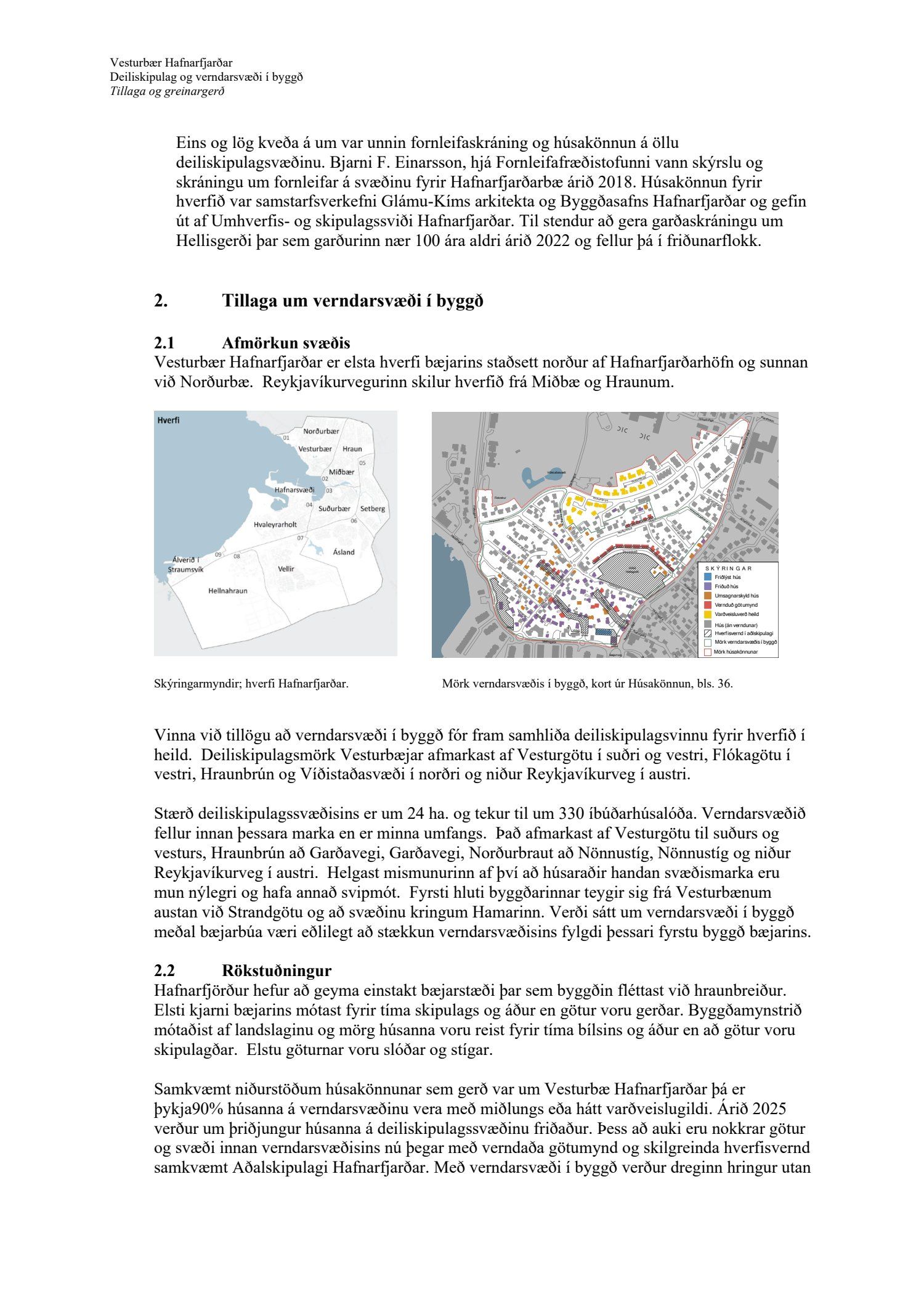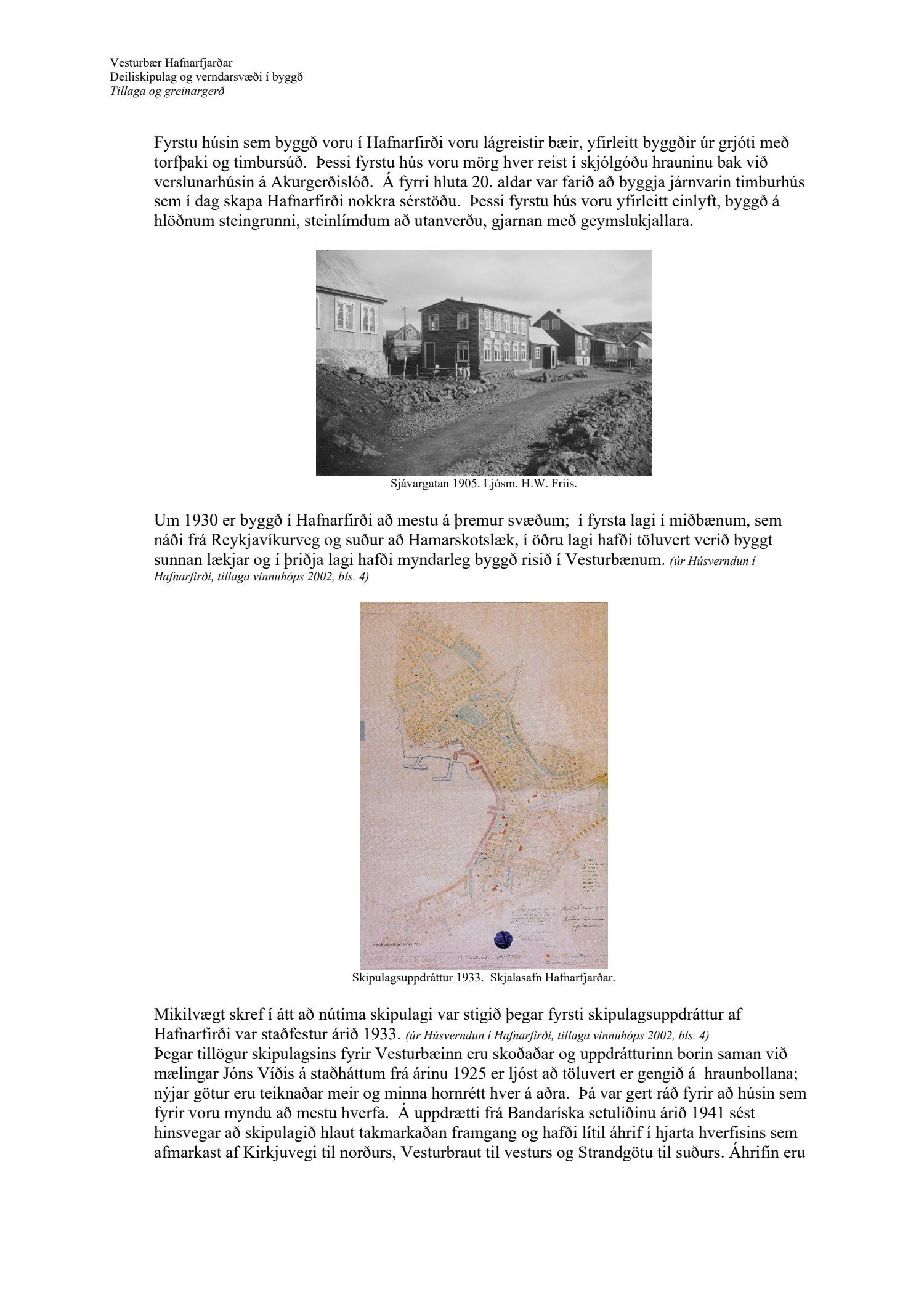 Skipulags- og byggingarráð samþykkir tillögu að deiliskipulagi vesturbæjar ásamt fylgiskjölum og að þau verði auglýst í samræmi við skipulagslög. Deiliskipulagserindinu er jafnframt vísað til bæjarstjórnar til staðfestingar. Skipulags- og byggingarráð samþykkir að vísa tillögu að verndarsvæði í byggð til menntamálaráðneytisins til meðferðar í samræmi við lög um verndarsvæði í byggð og vísar ákvörðun sinni til staðfestingar í bæjarstjórn.