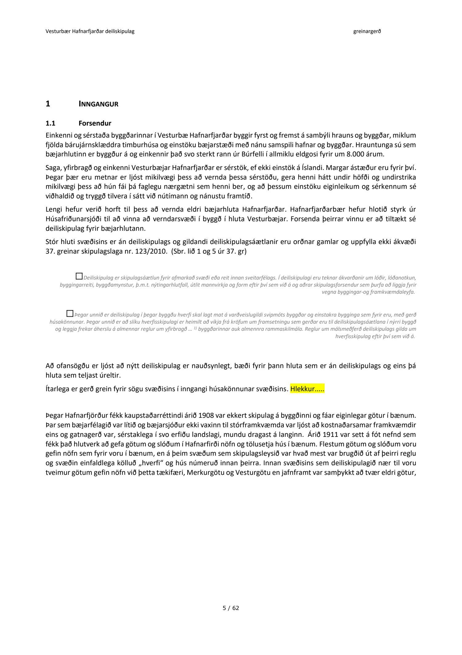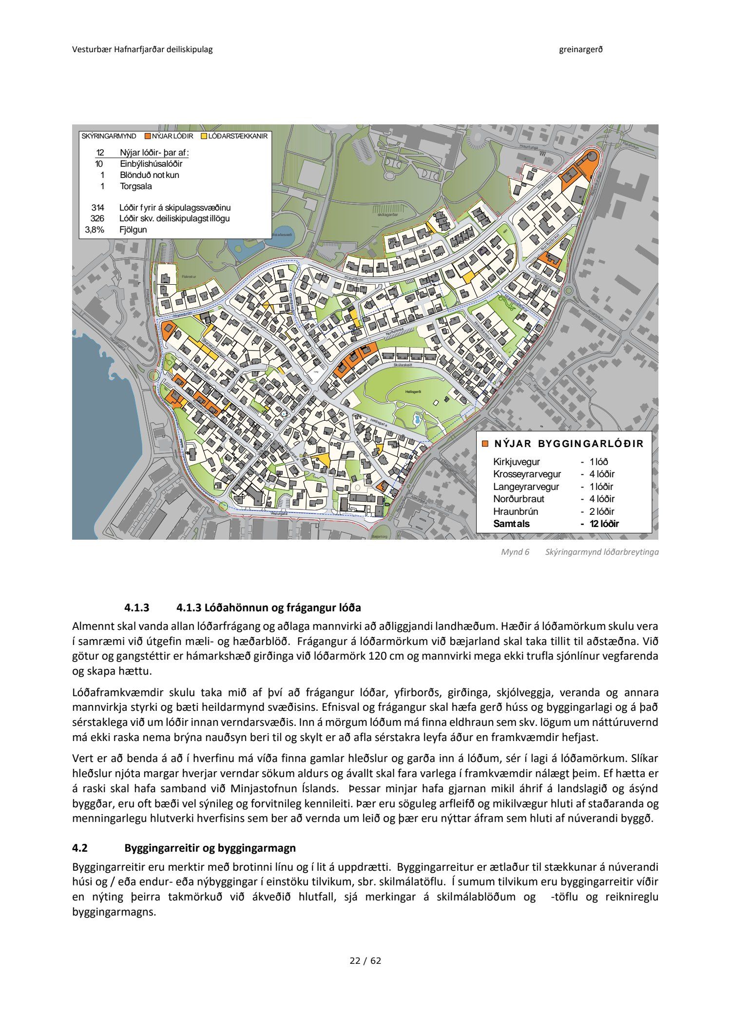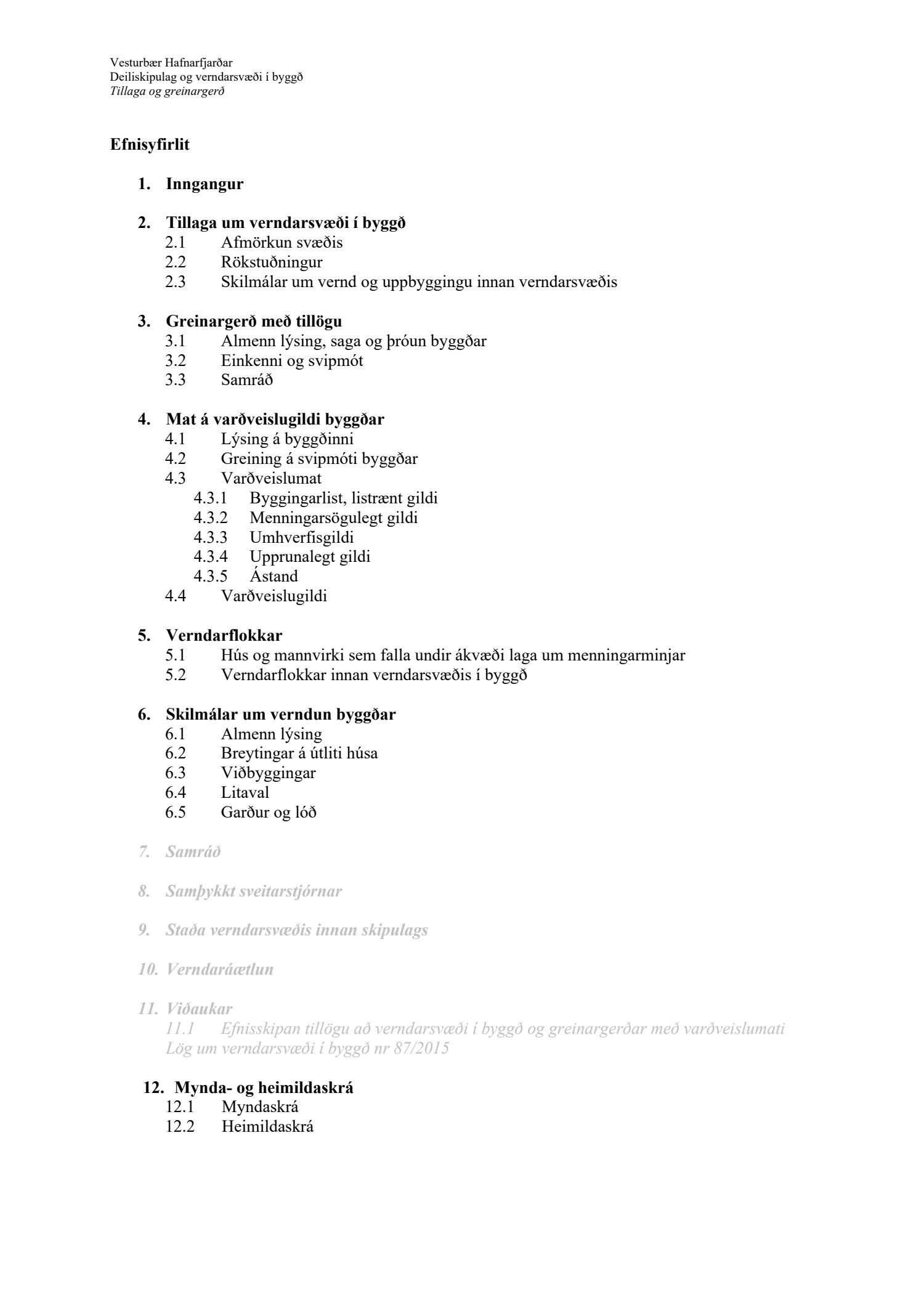 Skipulags- og byggingarráð samþykkir tillögu að deiliskipulagi vesturbæjar ásamt fylgiskjölum og að þau verði auglýst í samræmi við skipulagslög. Deiliskipulagserindinu er jafnframt vísað til bæjarstjórnar til staðfestingar. Skipulags- og byggingarráð samþykkir að vísa tillögu að verndarsvæði í byggð til menntamálaráðneytisins til meðferðar í samræmi við lög um verndarsvæði í byggð og vísar ákvörðun sinni til staðfestingar í bæjarstjórn.