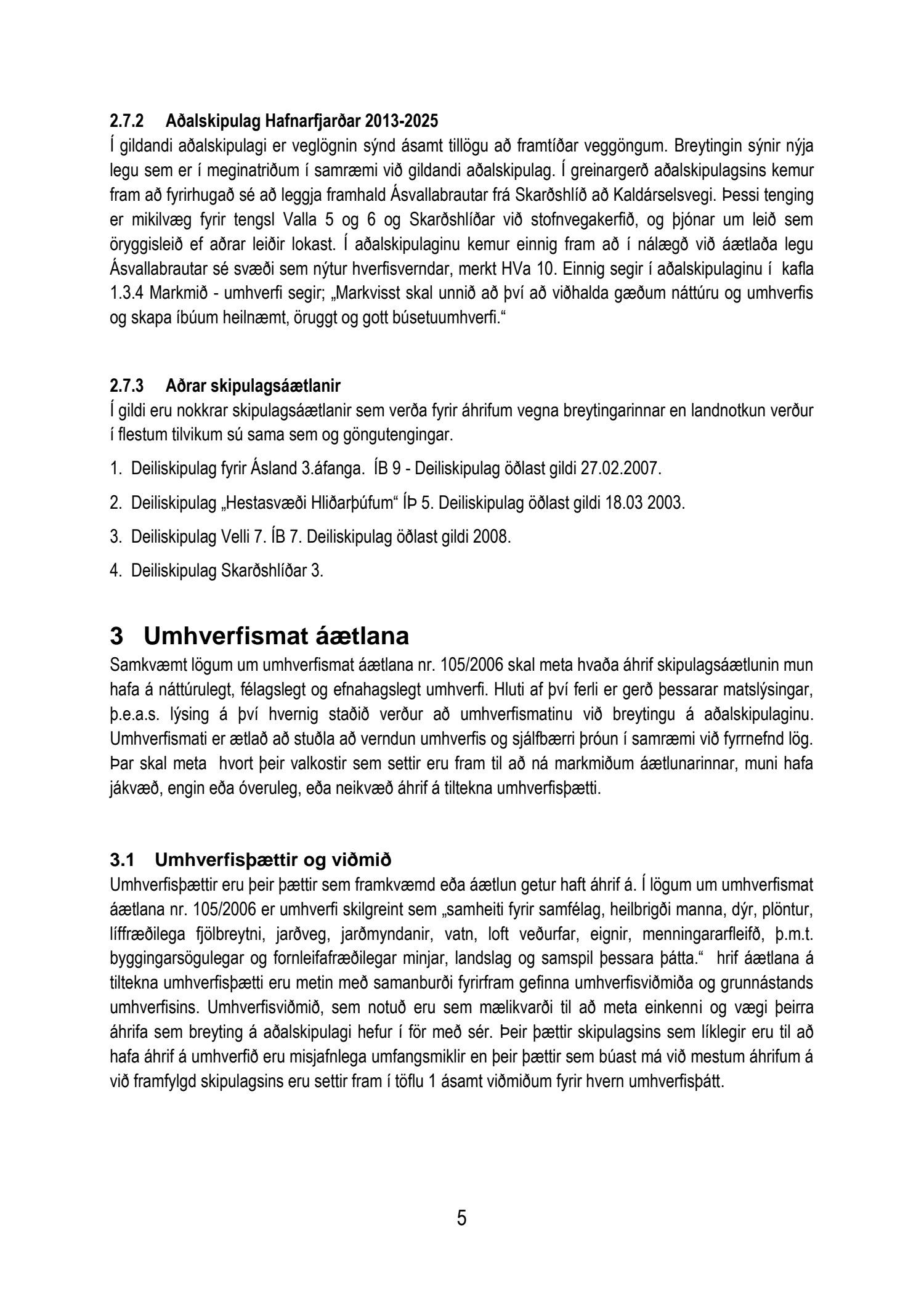 Ásvallabraut tenging Valla og Áslands, deiliskipulag