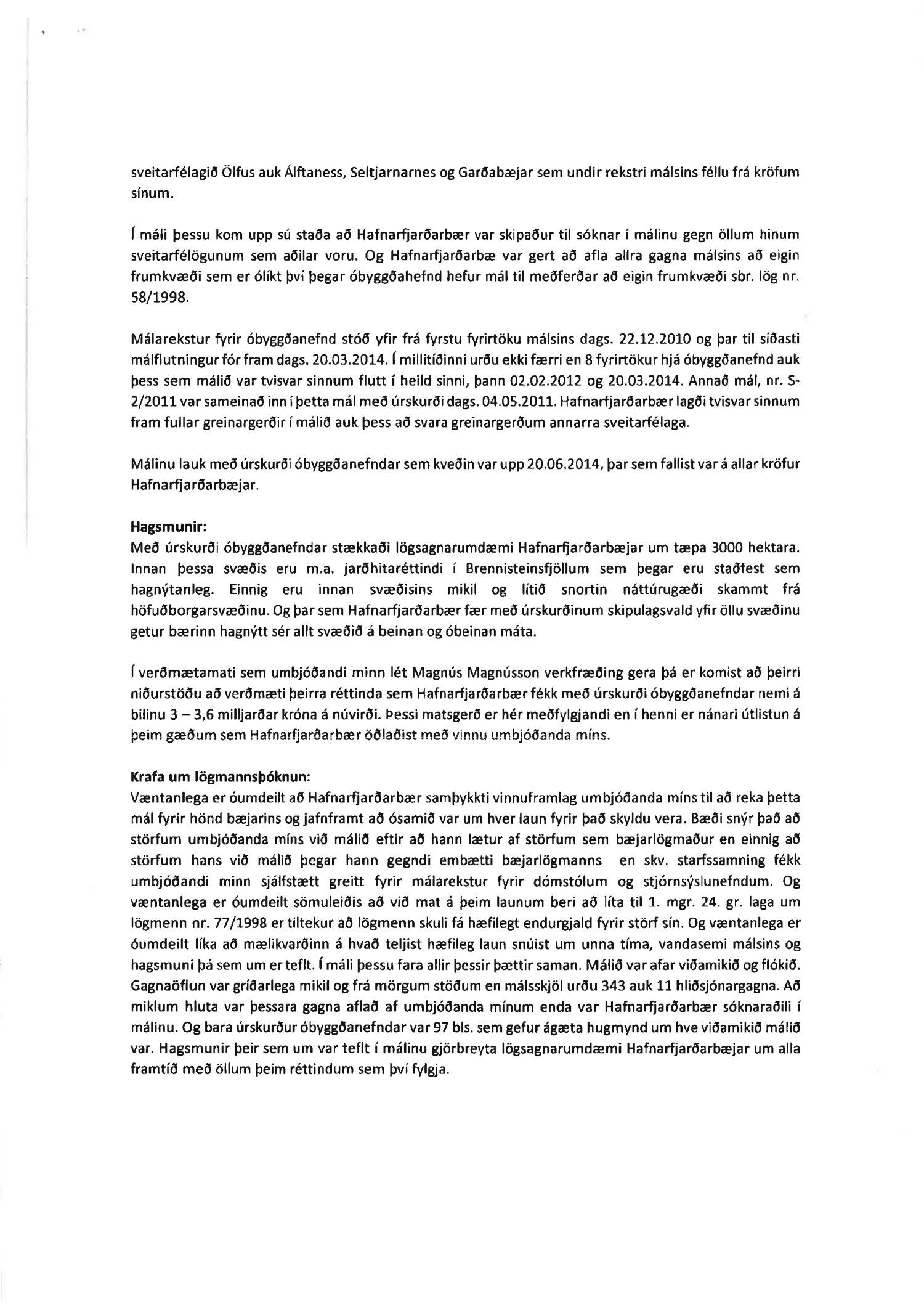 Lögð fram krafa um greiðslu vegna málareksturs fyrir óbyggðanefnd. Sigríður Kristinsdóttir bæjarlögmaður mætti á fundinn.