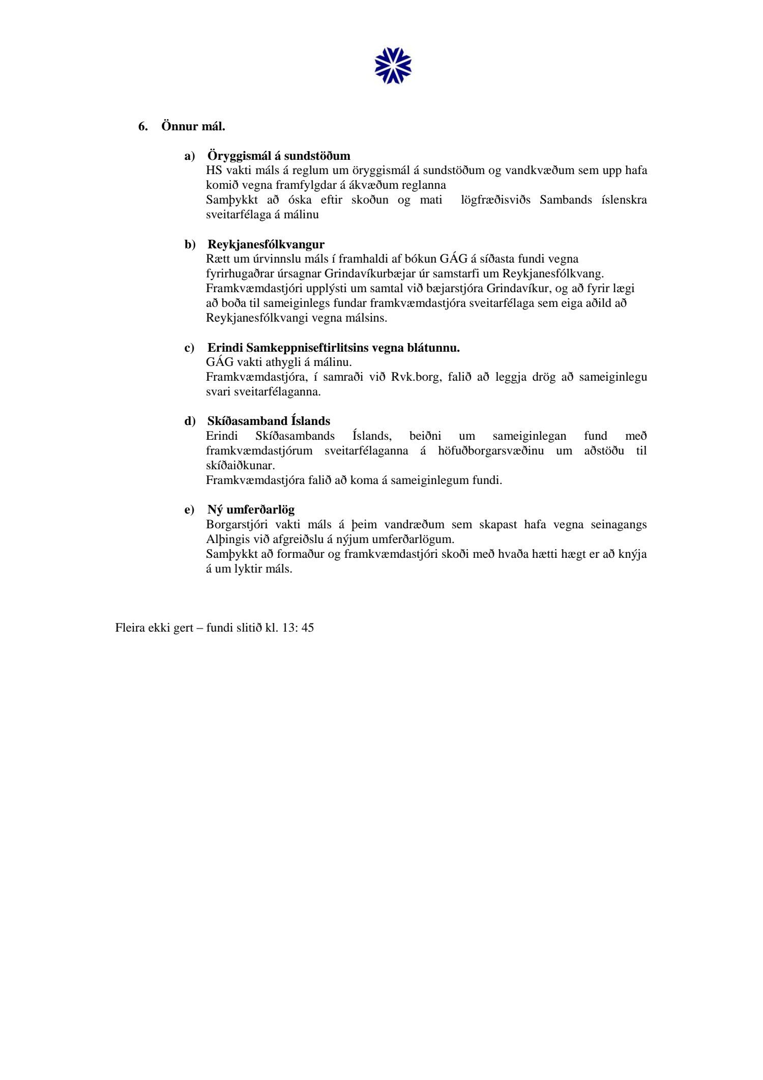 SSH, fundargerðir 2013