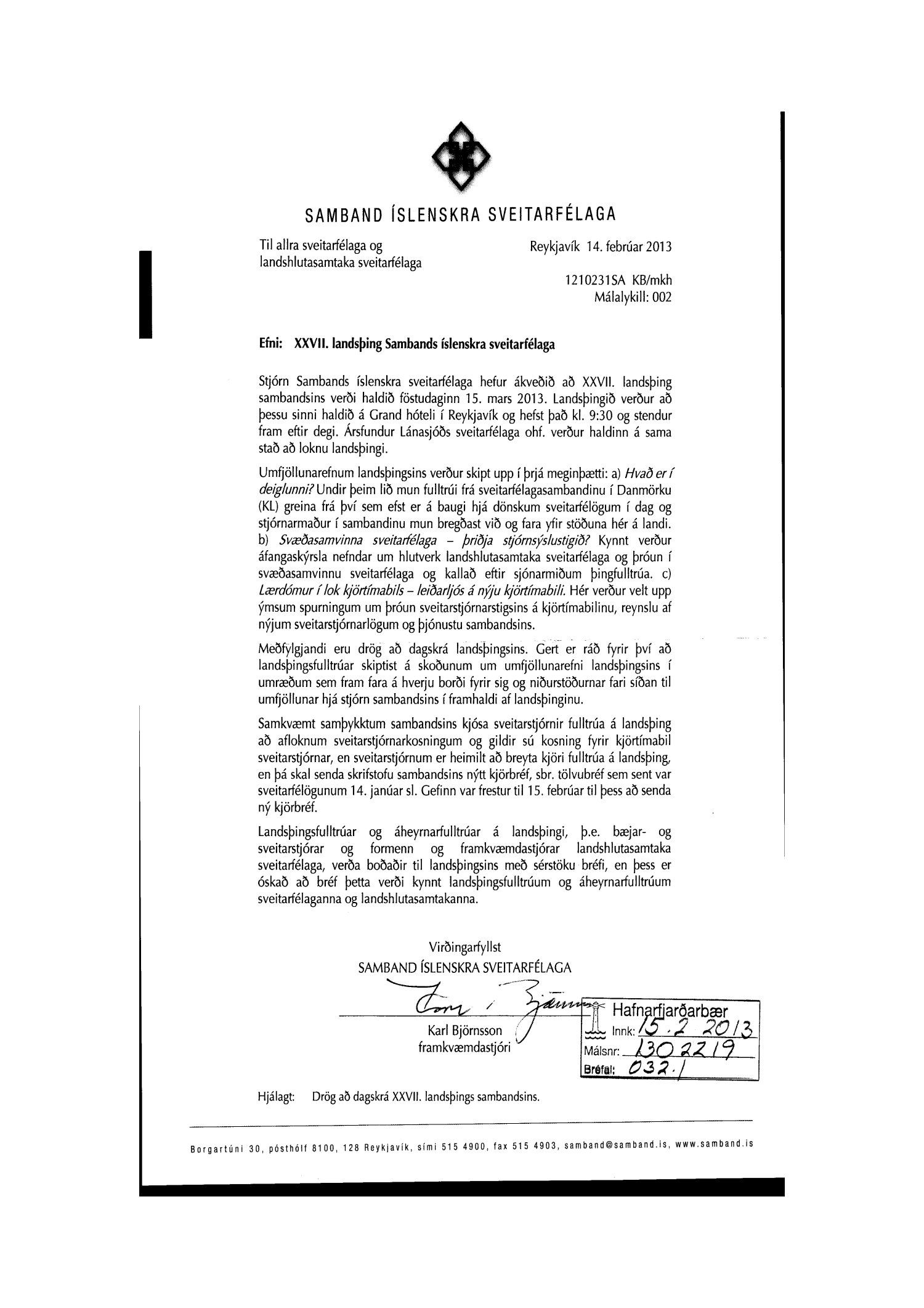 Lagt fram til kynningar.Aðalfulltrúar Hafnarfjarðar verða:Gunnar Axel Axelsson Sigríður Björk JónsdóttirEyjólfur SæmundssonRósa GuðbjartsdóttirKristinn Andersen