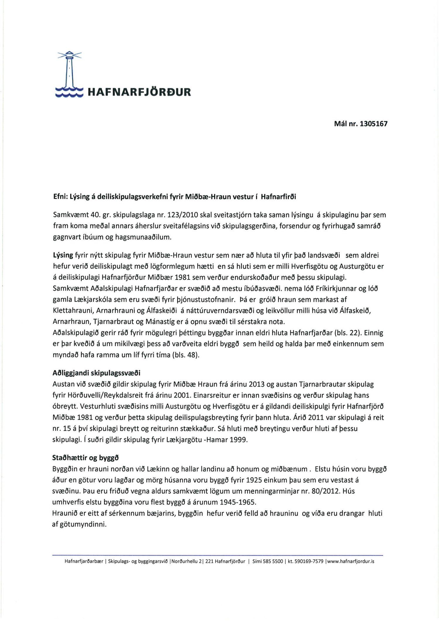 Skipulags- og byggingarráð samþykkir deiliskipulagslýsinguna með áorðnum breytingum, þ.m.t. stækkun skipulagsreitsins þannig að austurmörk hans verði við Arnarhraun, og að farið verði með lýsinguna skv. 40. grein skipulagslaga nr. 123/2010. Nafni svæðisins verði breytt í Miðbær-Hraun austur. Skipulags- og byggingarráð gerir eftirfarandi tillögu til bæjarstjórnar: