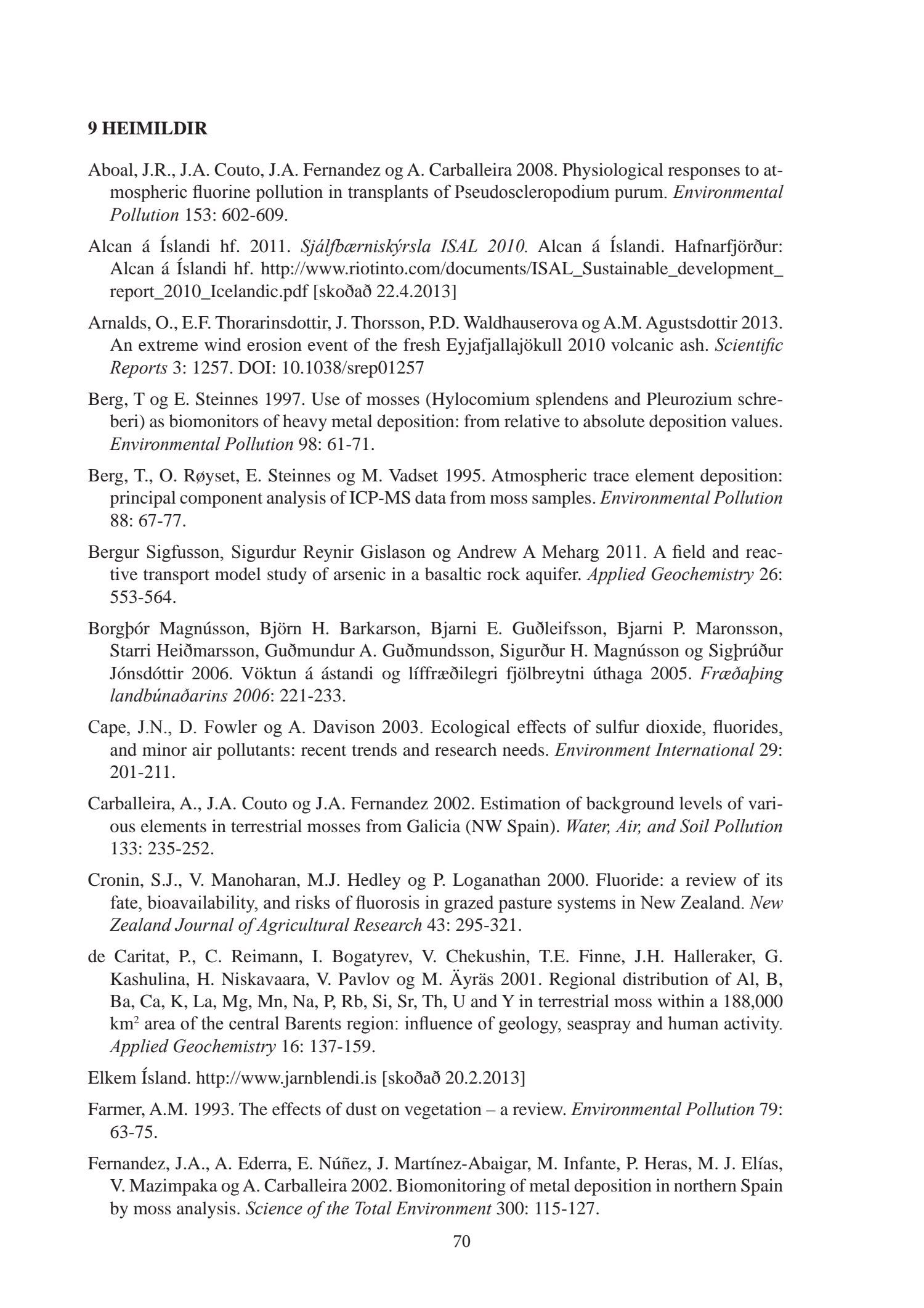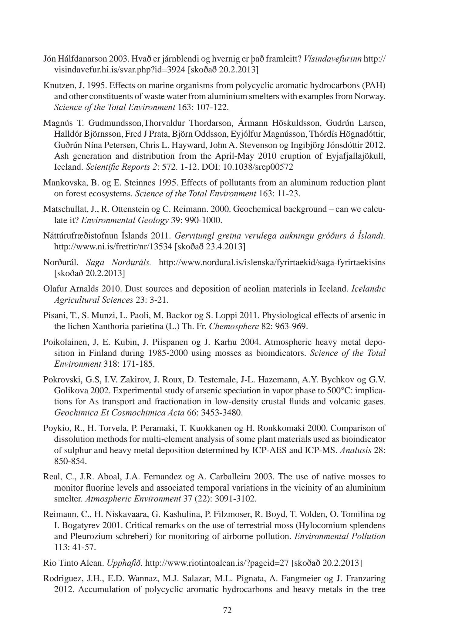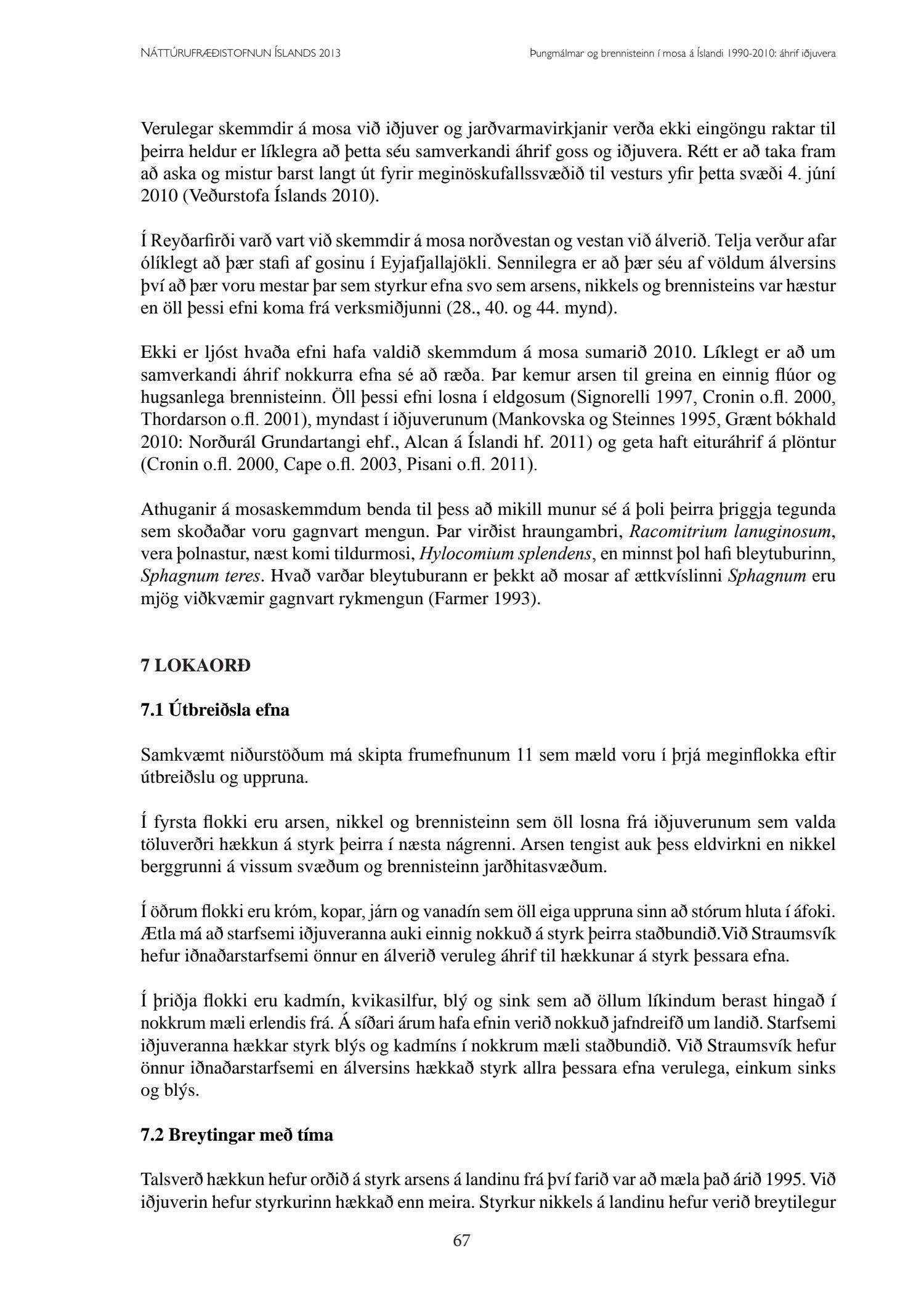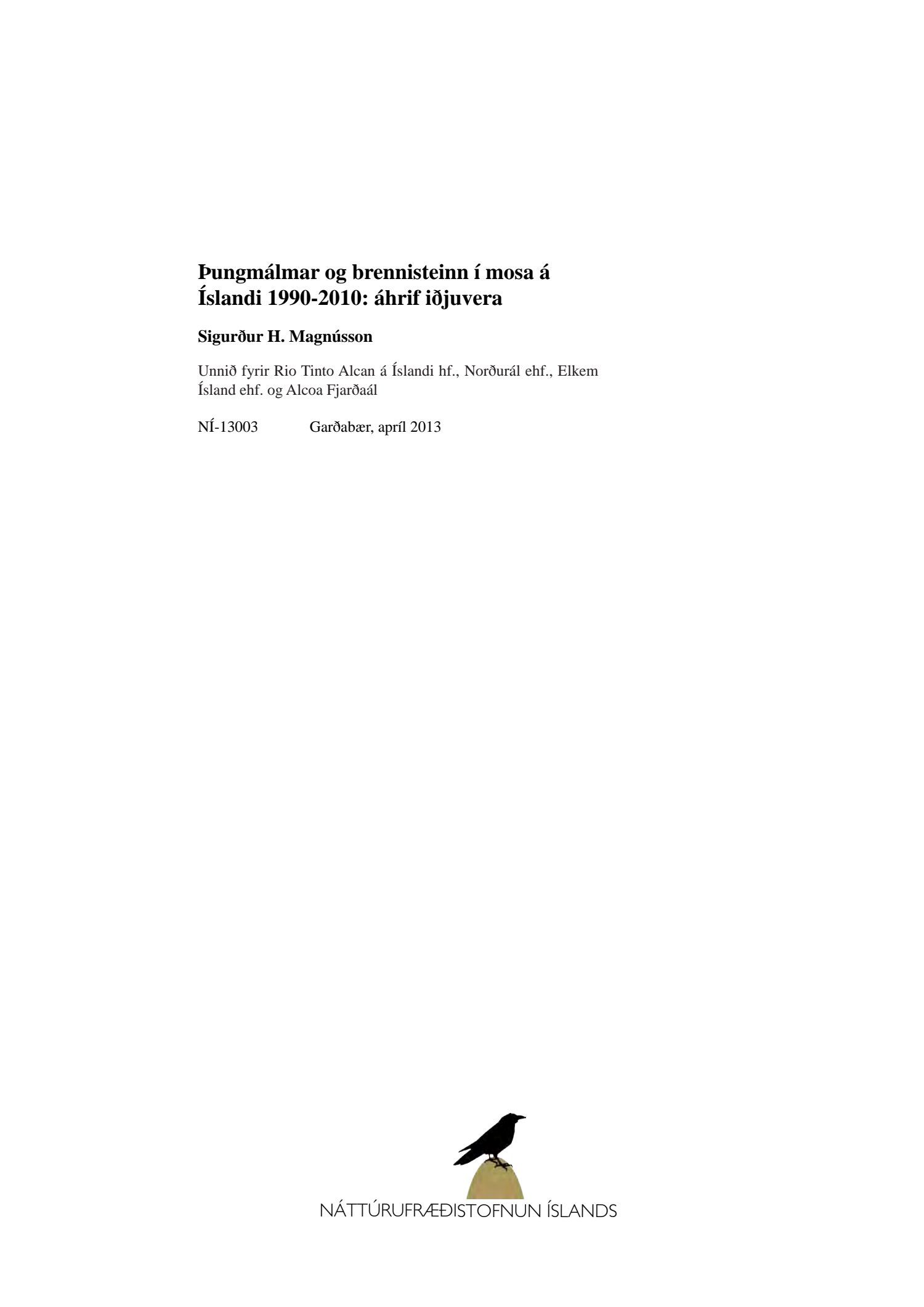 Lögð fram skýrsla Sigurðar H. Magnússonar gróðurvistfræðings hjá Náttúrufræðistofnun Íslands: Þungmálmar og brennisteinn í mosa á Íslandi 1990-2010: Áhrif iðjuvera.