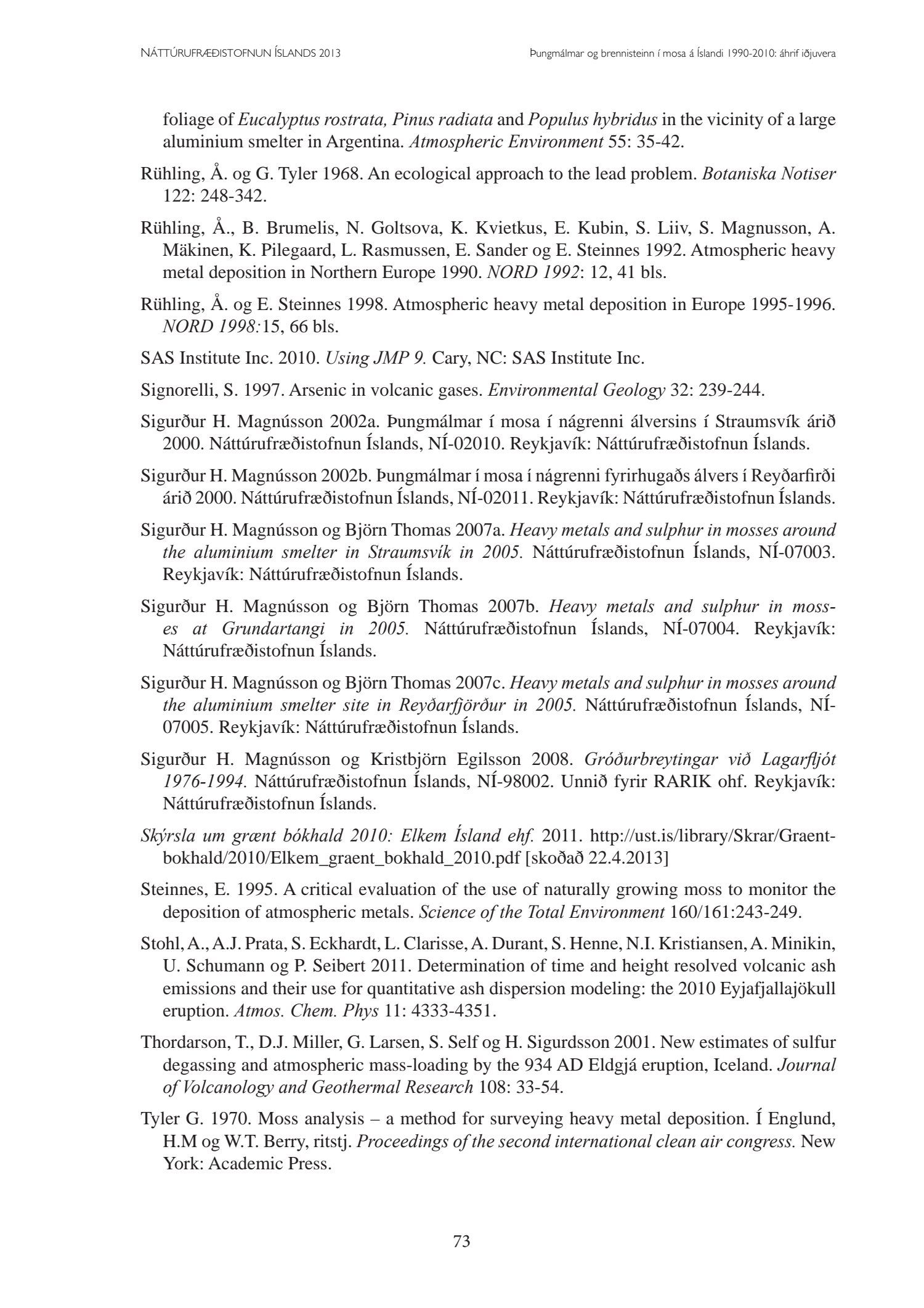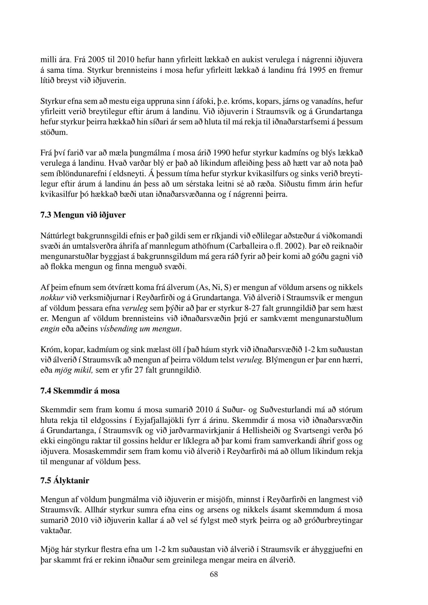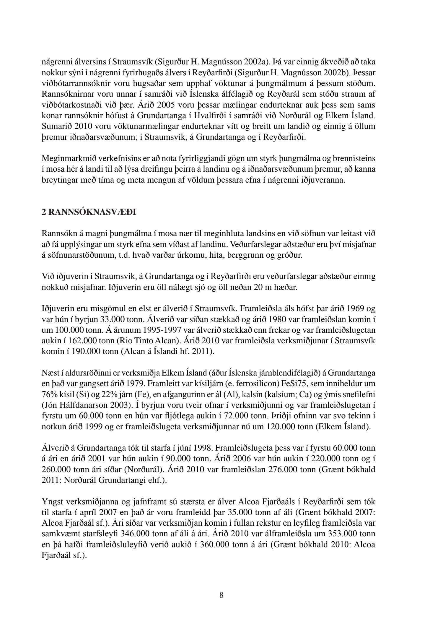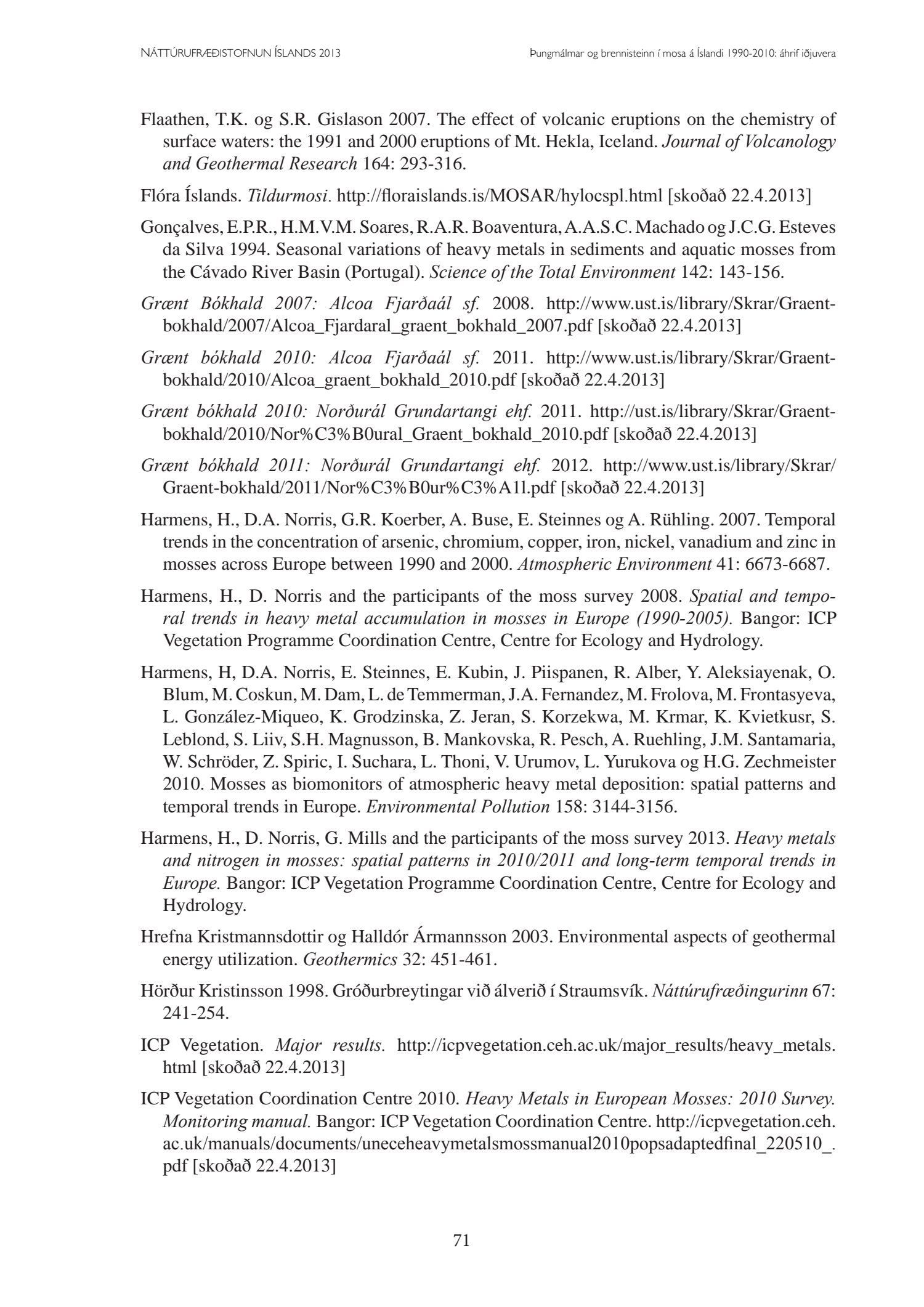 Lögð fram skýrsla Sigurðar H. Magnússonar gróðurvistfræðings hjá Náttúrufræðistofnun Íslands: Þungmálmar og brennisteinn í mosa á Íslandi 1990-2010: Áhrif iðjuvera.