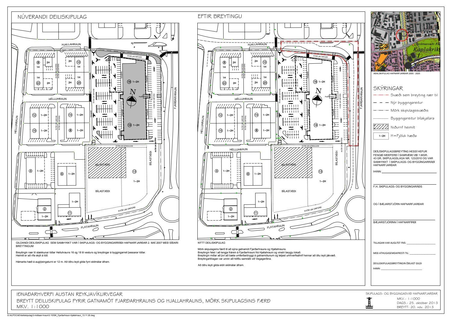 Tekin til umræðu tillaga Skipulags- og byggingarsviðs að breytingu á deiliskipulagi svæðis sem afmarkast af Flatahrauni, Fjarðarhrauni, Hjallahrauni og Helluhrauni, sem sýnir breytingu gatnamóta og akreina Fjarðarhrauns. Skipulags- og byggingarráð samþykkti á fundi sínum 5.11.2013 að auglýsa tillöguna skv. 41. gr. laga nr. 123/2010. Tillagan var auglýst og athugasemdafrestur er liðinn, engar athugasemdir bárust. Erindið var til umfjöllunar á afgreiðslufundi skipulags- og byggingarfulltrúa 08.01.14, sem vísaði því til skipulags- og byggingarráðs.