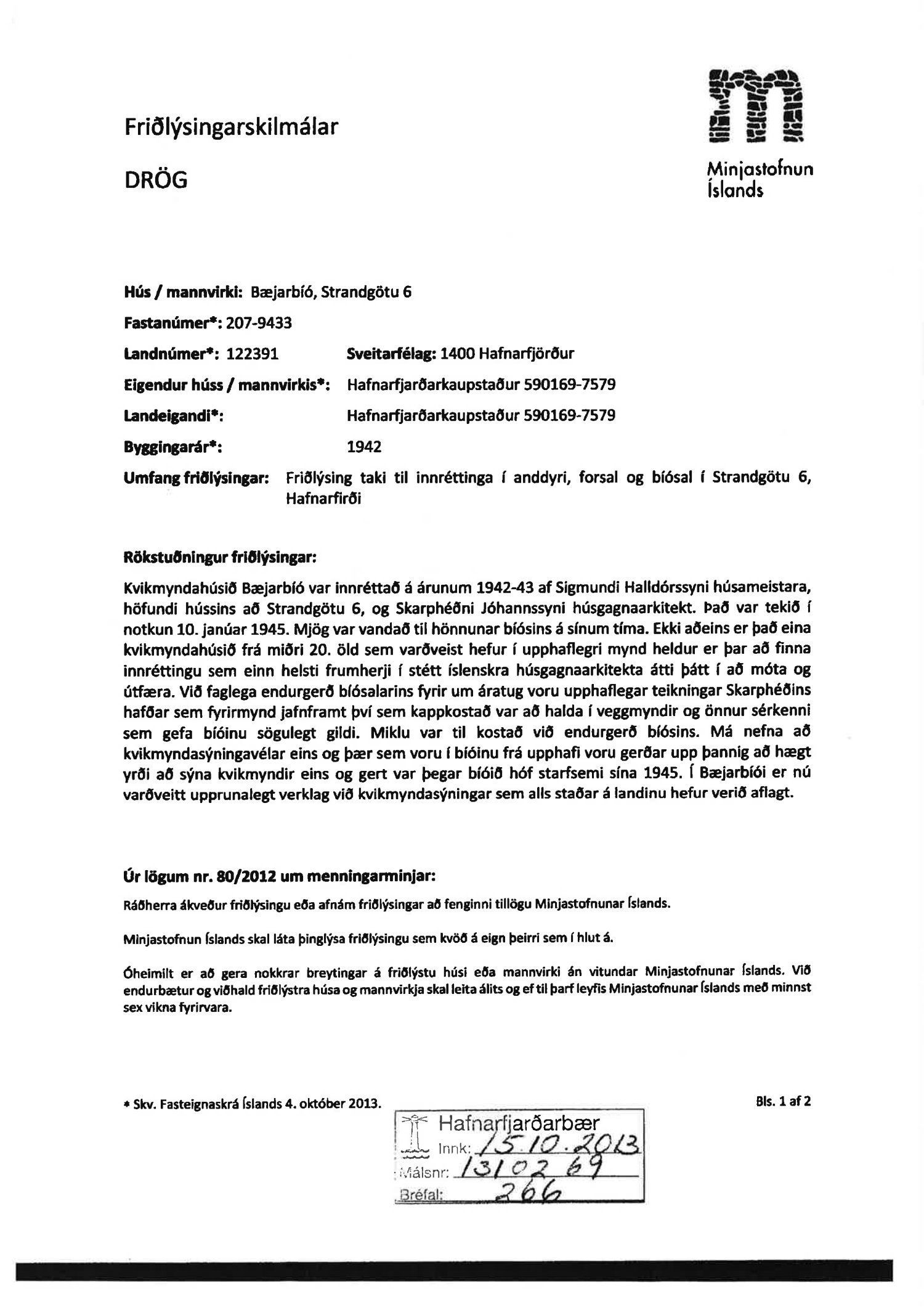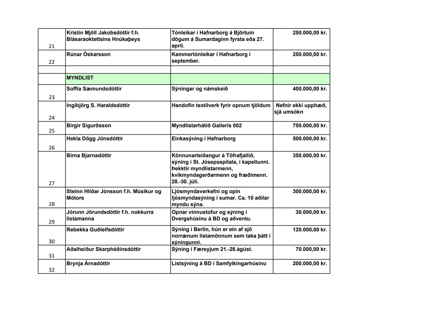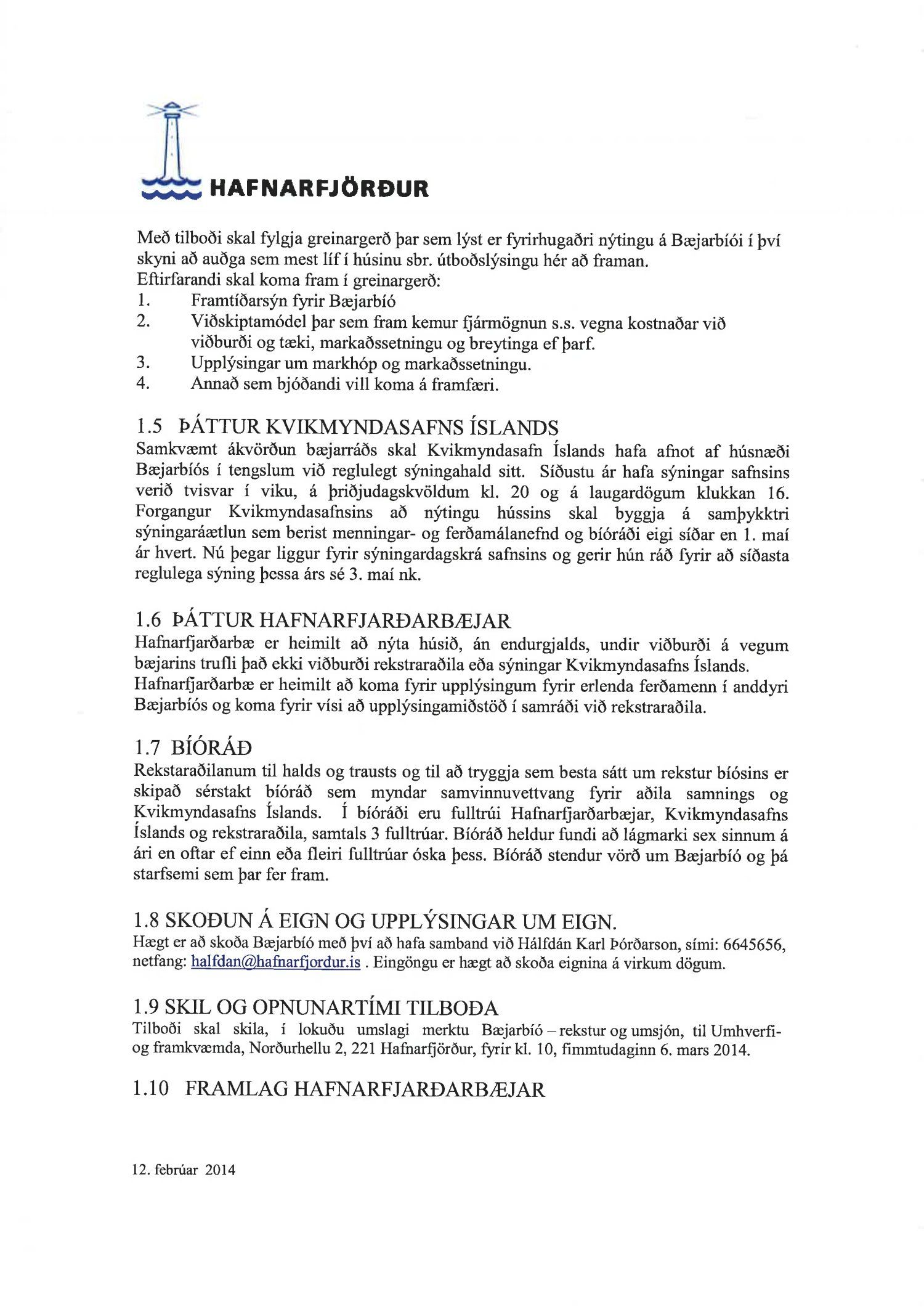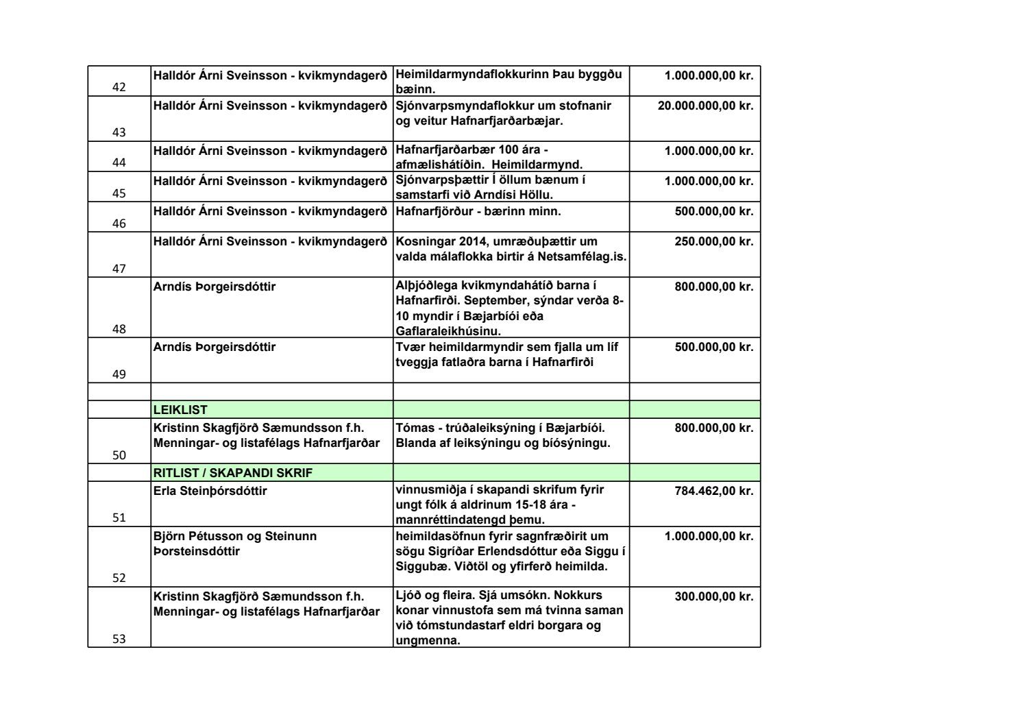 Lagt fram til kynningar. 20.3. 1403010 - Bjartir dagar 2014 Menningar- og ferðamálafulltrúi greindi frá helstu atriðum dagskrár. 20.5. 1009320 - Gaflaraleikhúsið Frestað til næsta fundar. 20.6. 1309278 - Bæjarlistamaður og hvatningarstyrkir 2014 Fundað með stjórn Hafnarborgar. Farið yfir þær ábendingar og tillögur sem bárust. Ákveðið samhljóða hver skuli útnefndur bæjarlistamaður og hvaða tveir listamenn hljóti hvatningarstyrki. Upplýst verður um valið síðasta vetrardag, þann 23. apríl n.k.