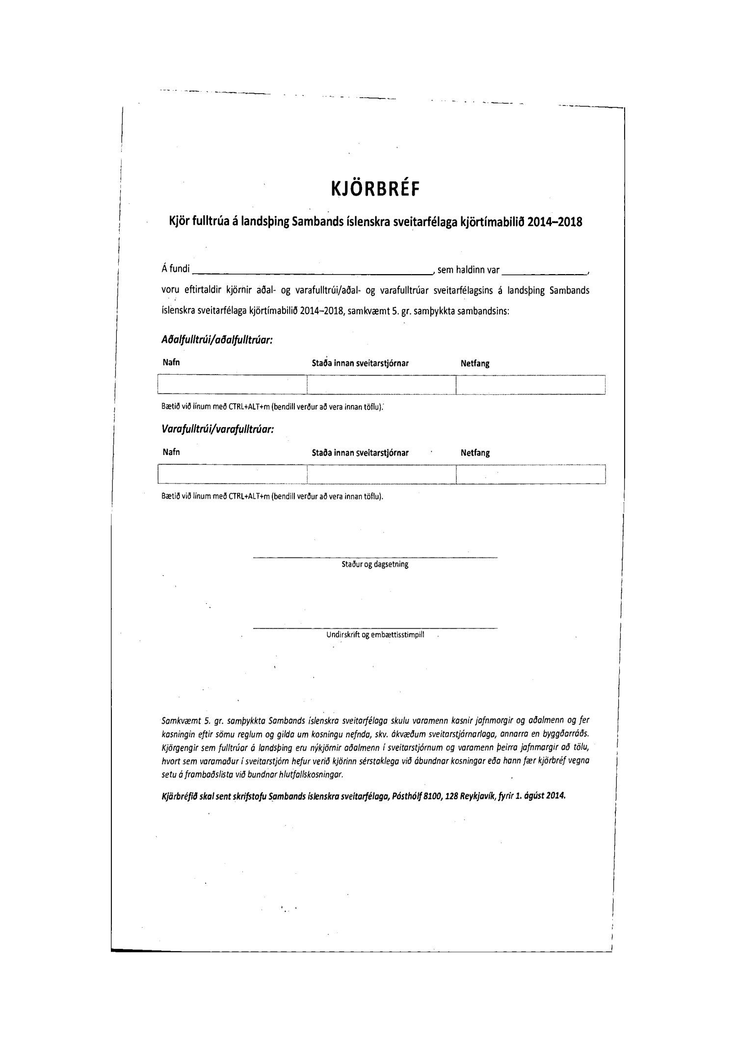 Samband ísl. sveitarfélaga, kosning fulltrúa, samþykktir og fyrirmynd að kjörbréfi.pdf