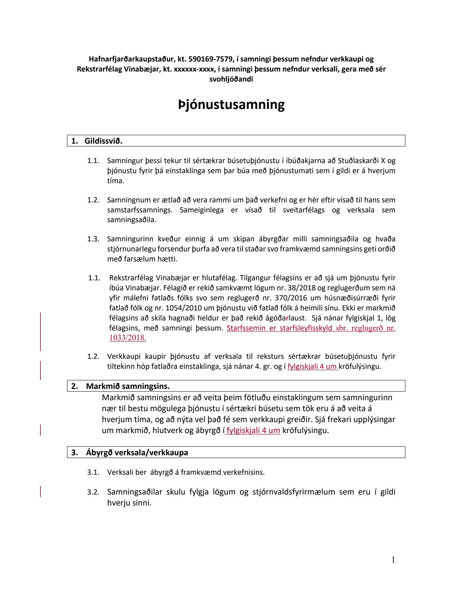 Bæjarstjórn samþykkir samhljóða fyrirliggjandi þjónustusamning.