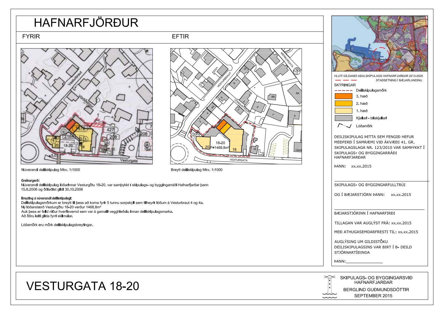 "Bæjarstjórn Hafnarfjarðar samþykkir fyrirliggjandi tillögu að breyttu deiliskipulagi Vesturgötu 18- 20 og að málinu verði lokið í samræmi við 1. mgr. 42 gr. skipulagslaga nr. 123/2010."