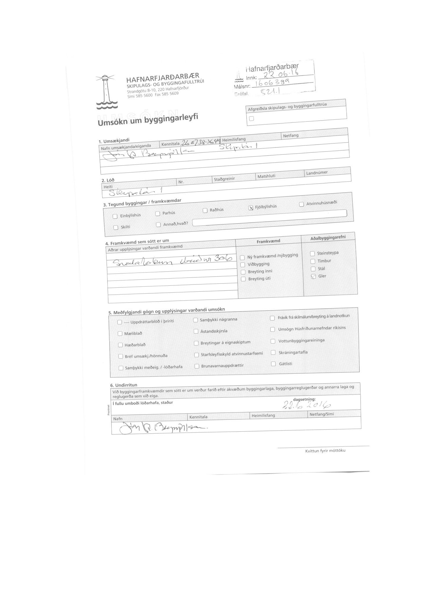 Byggingarfulltrúi samþykkir erindið í samræmi við lög um mannvirki nr. 160/2010