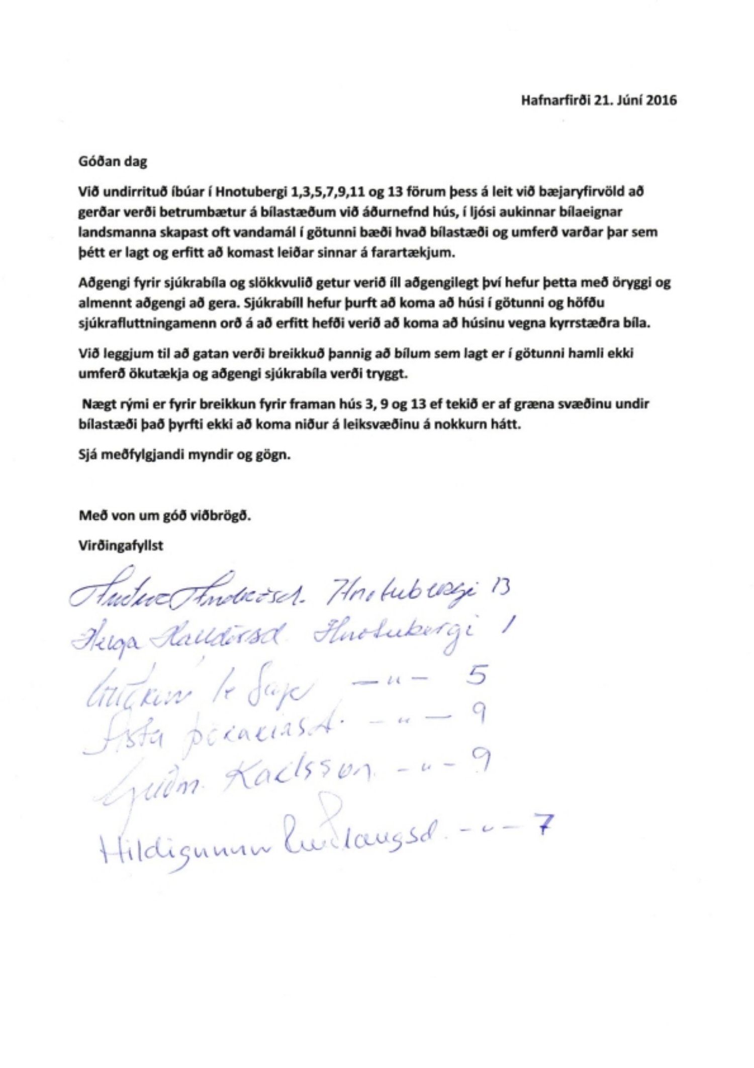 Lögð fram fyrirspurn Hildigunnar Guðlaugsdóttur dags. 21.6. 2016 f.h. íbúa ofangreindra lóða um reikkun götunnar vegna slæms aðgengis ökutækja.
