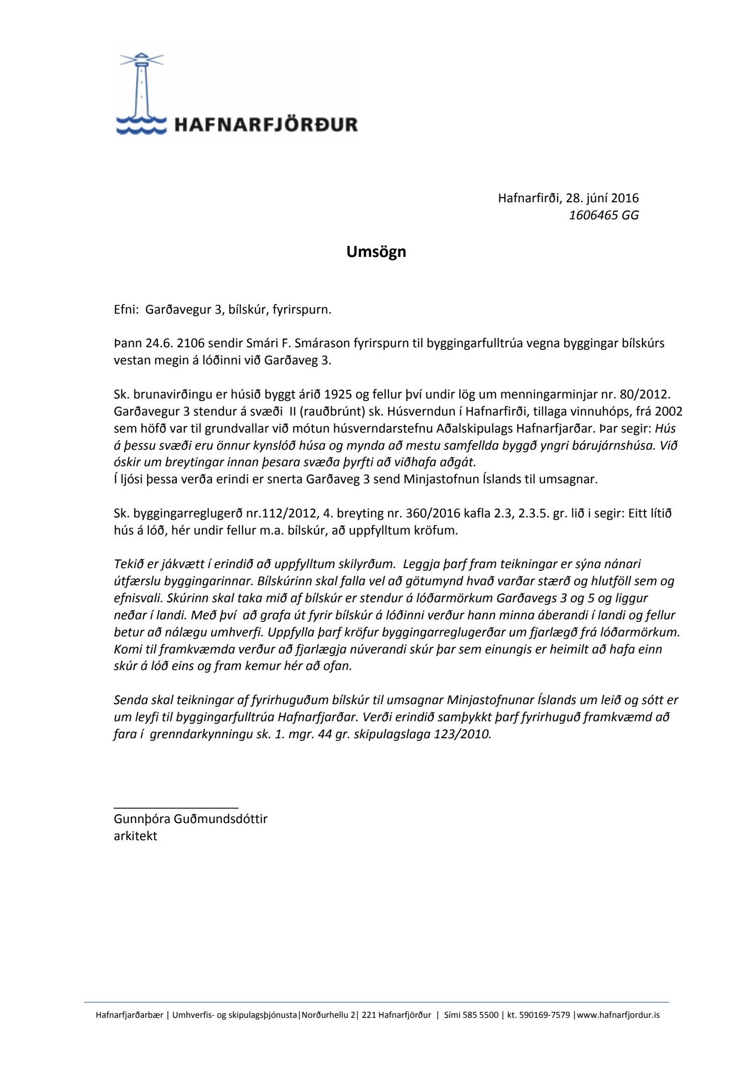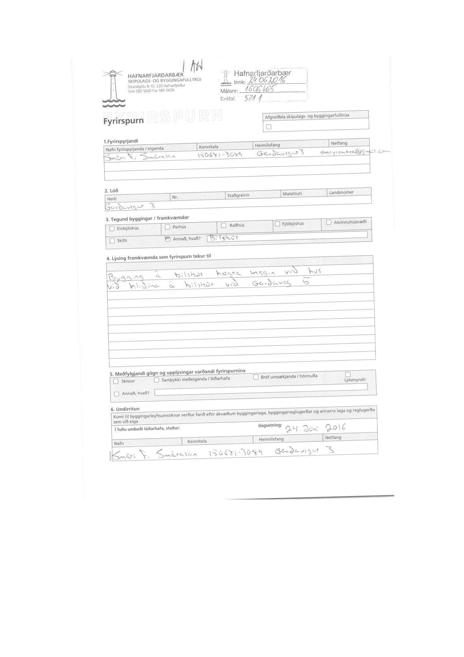 Smári Smárason leggur 24.06.2016 fyrirspurn um að byggja bílskúr hægra megin við hús við hlíðina á bílskúr við Garðaveg 5.