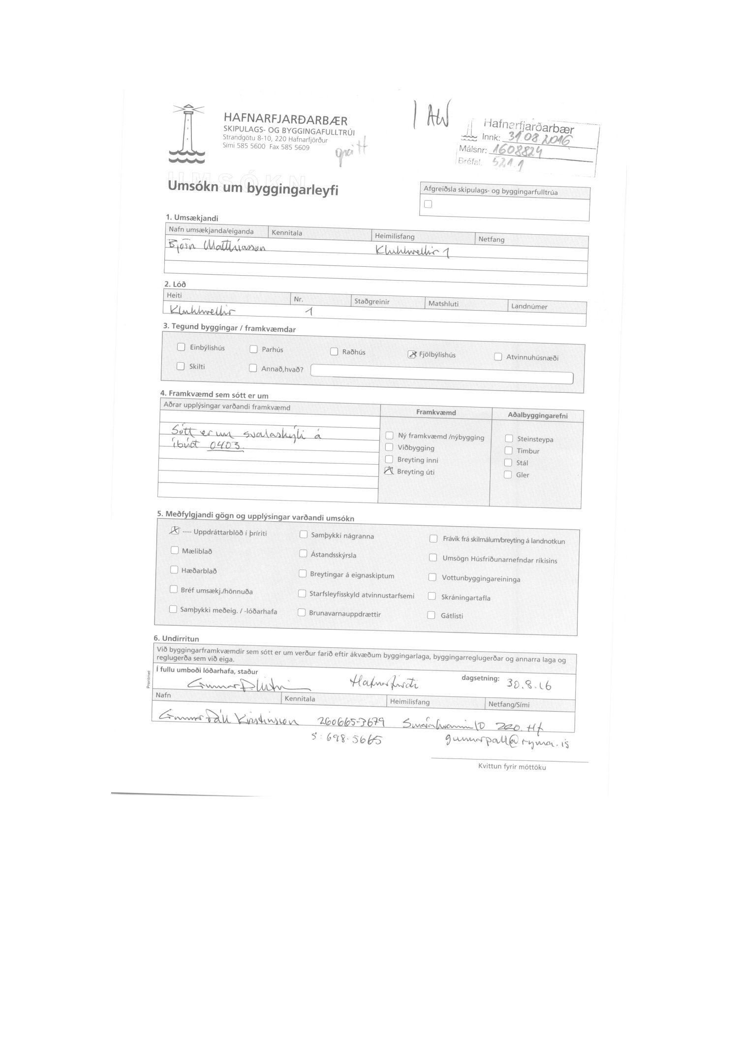 Klukkuvellir 1, byggingarleyfi, svalalokun