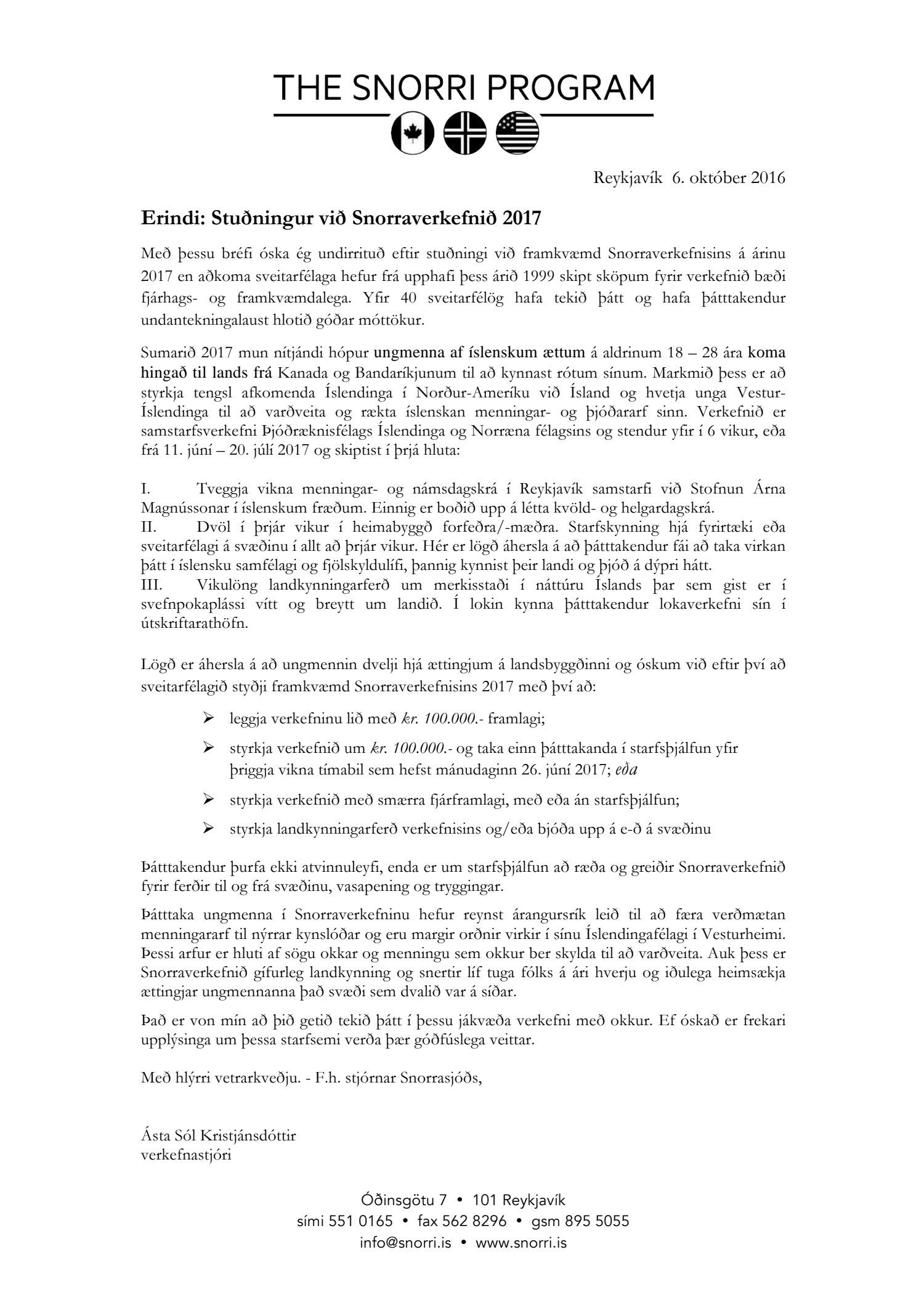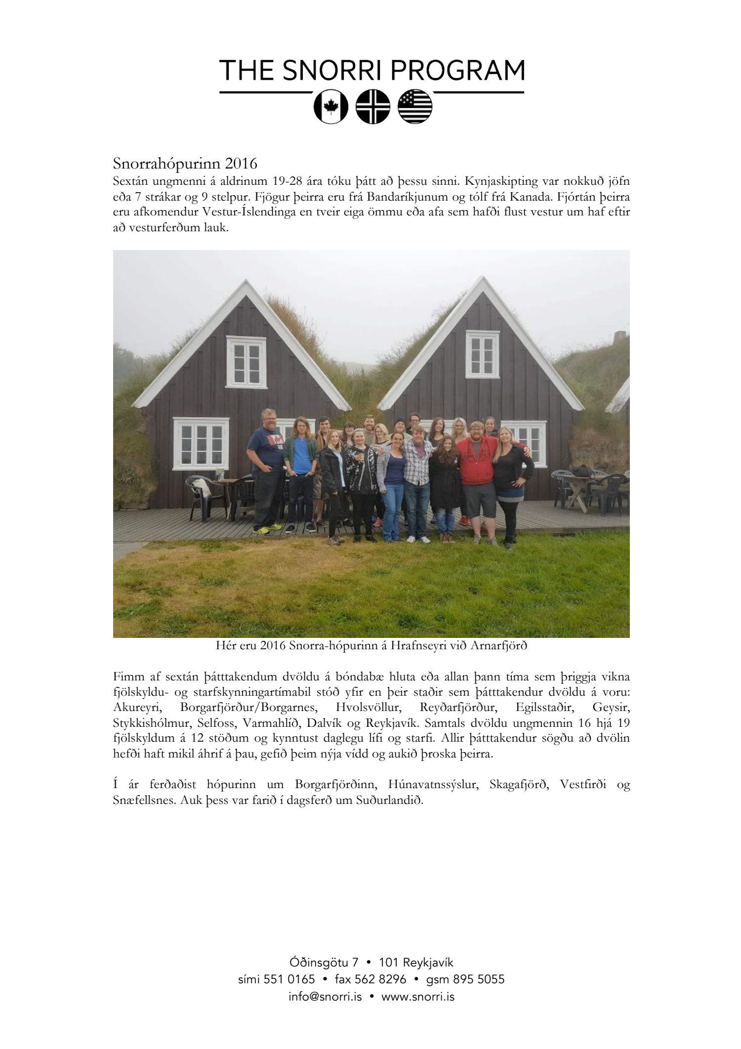 Snorraverkefnið, stuðningur sumarið 2017