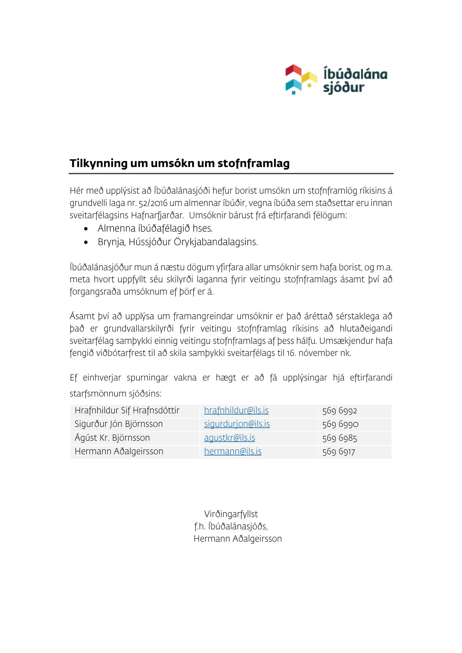 Tilkynning Íbúðalánasjóði um umsóknir um stofnframlög.