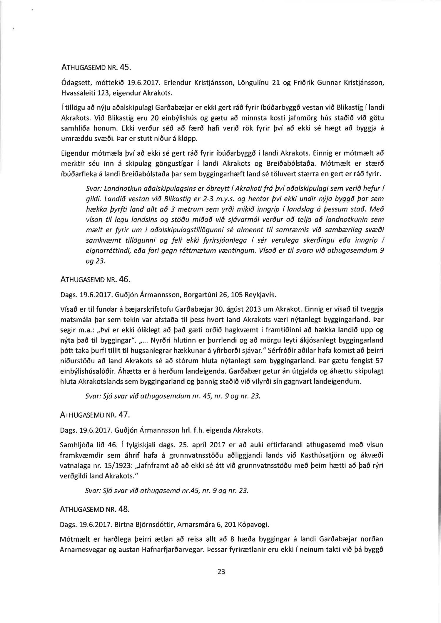Skipulags- og byggingarráð felur umhverfis- og skipulagsþjónustu að leggja fram drög að kæru á næsta fundi.