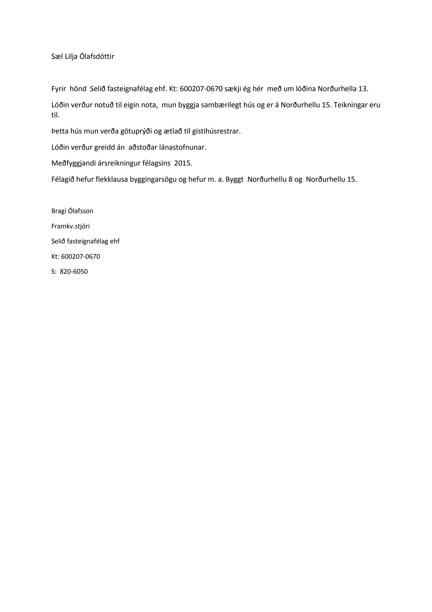 Bæjarráð leggur til við bæjarstjórn að lóðinni Norðurhellu 13 verði úthlutað til Selsins Fasteignafélags ehf.