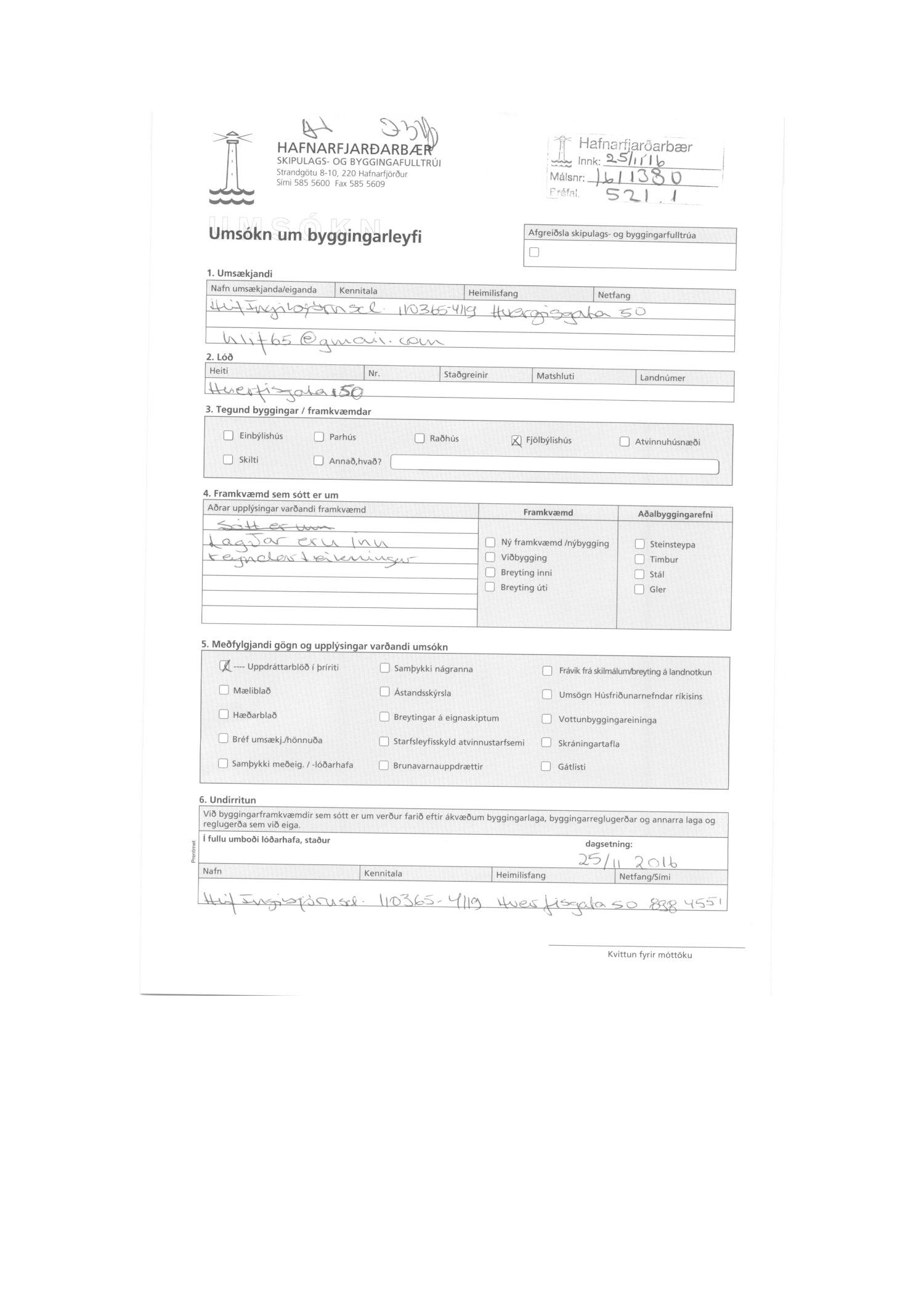 Hlíf Ingibjörnsdóttir leggur 25.11.16 inn reyndarteikningar samkvæmt teikningum Arnhildar Pálmadóttur dags. 23.11.16.Nýjar teikningar bárust 13.12.16