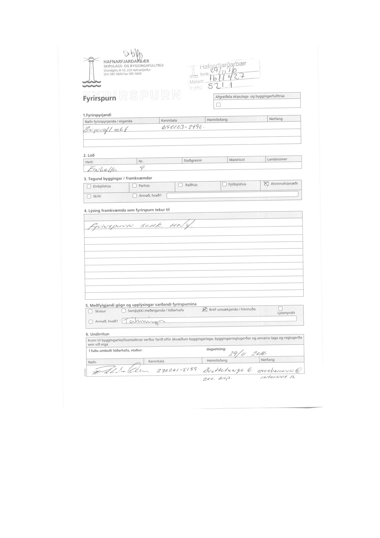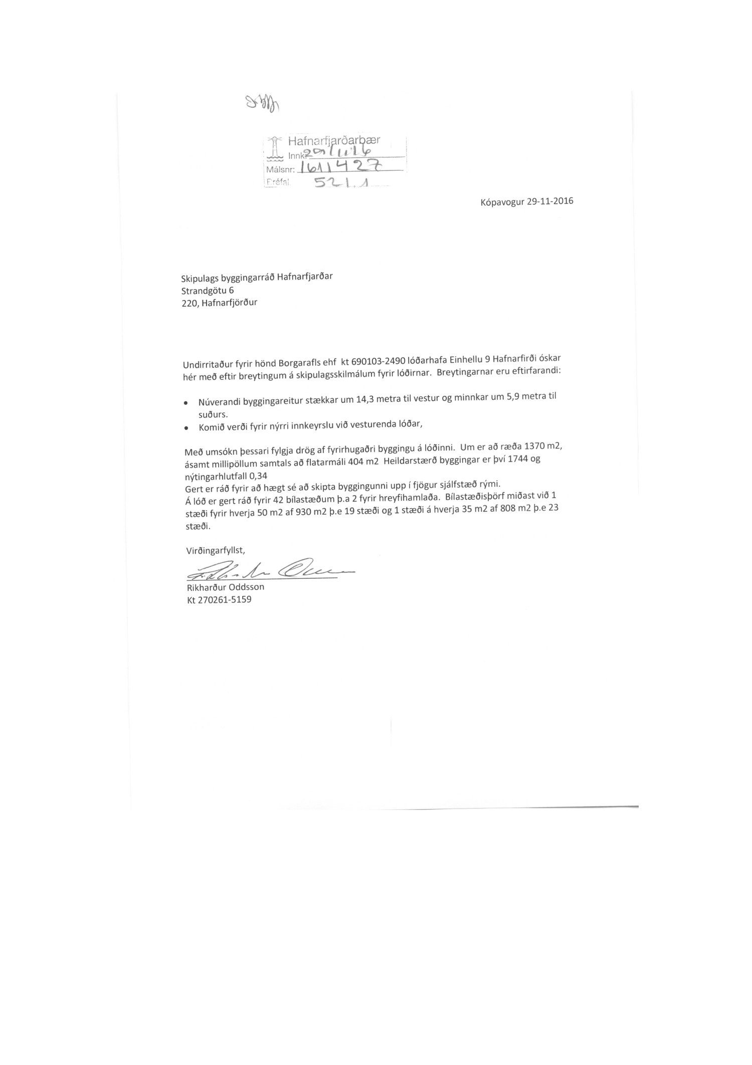 Borgarafl ehf leggur 29.11.16 inn fyrirspurn um breytingu á byggingarreit og innkeyrslu inn á lóð. Sjá meðfylgjandi bréf og teikningar Ríkharðs Oddssonar dags. 29.11.2016.