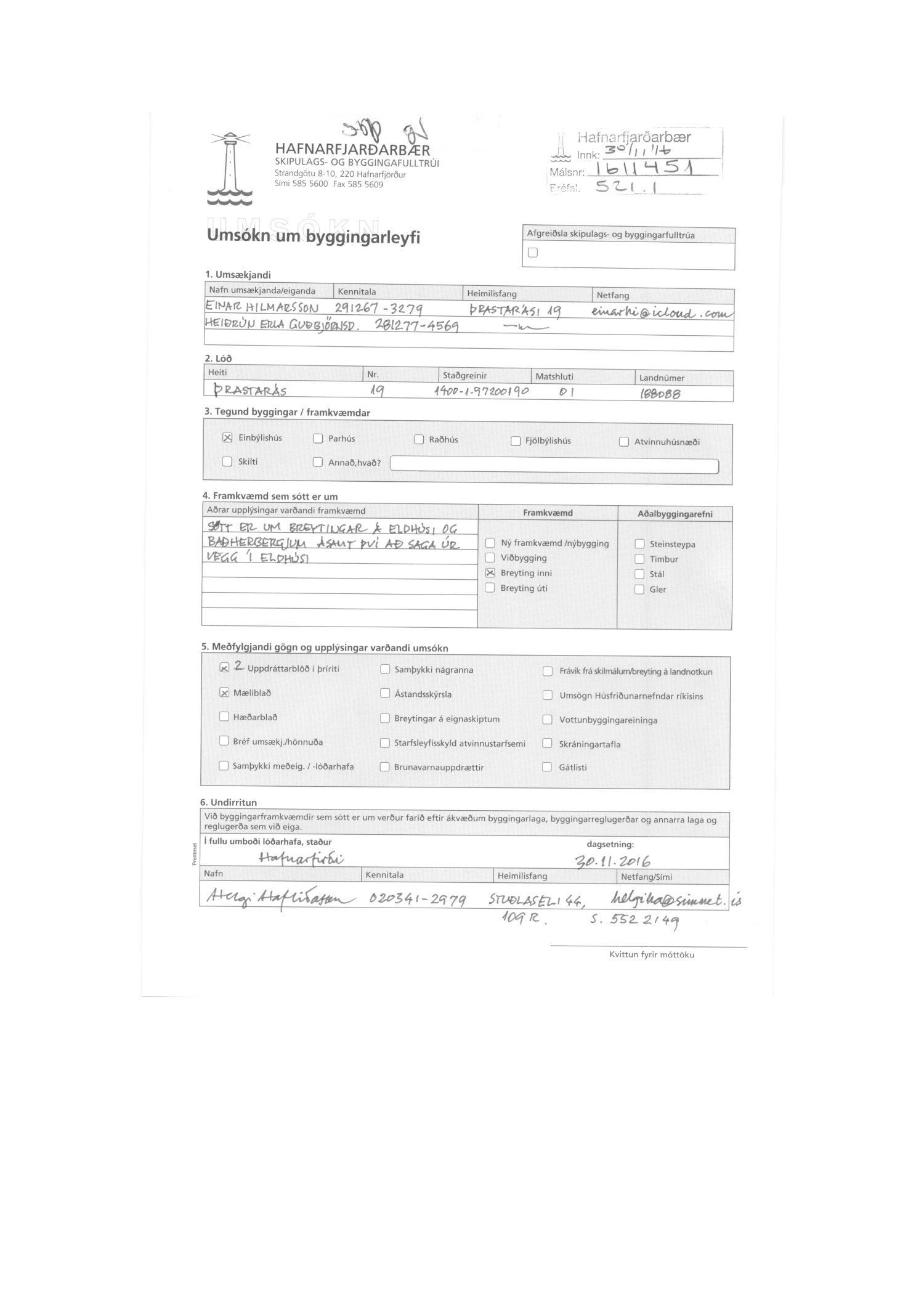 Byggingarfulltrúi samþykkir erindið í samræmi við lög um mannvirki 160/2010