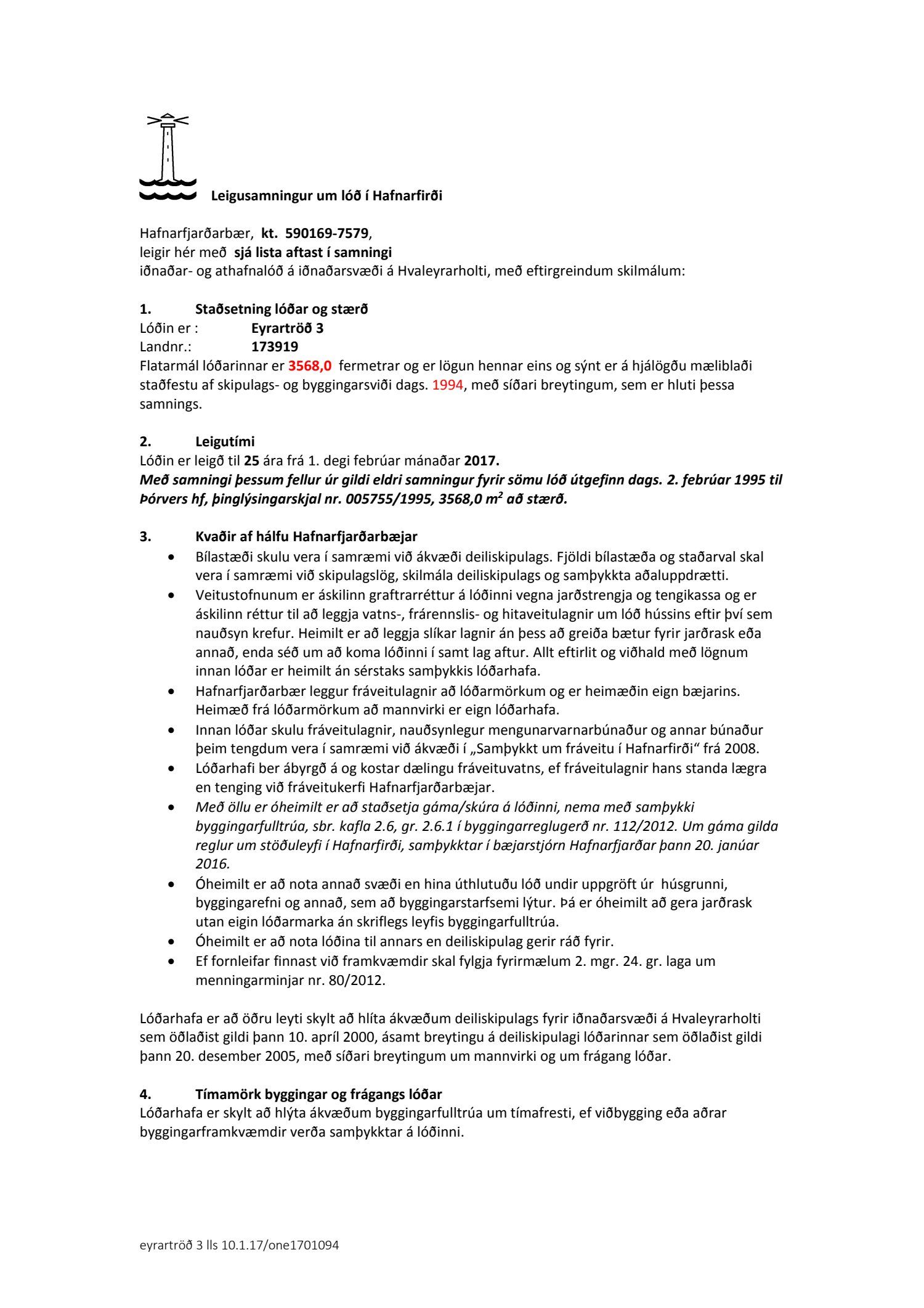 Eyrartröð 3, lóðarleigusamningur