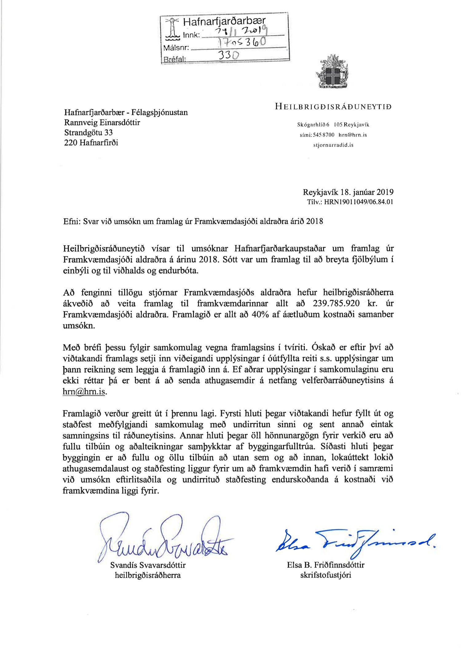 Bæjarráð fagnar þessari úthlutun úr framkvæmdasjóði aldraðra sem er afar mikilvægur þáttur í því að heildstæð þjónusta við aldraða verði að veruleika á Sólvangssvæðinu eins og stefnt hefur verið að.