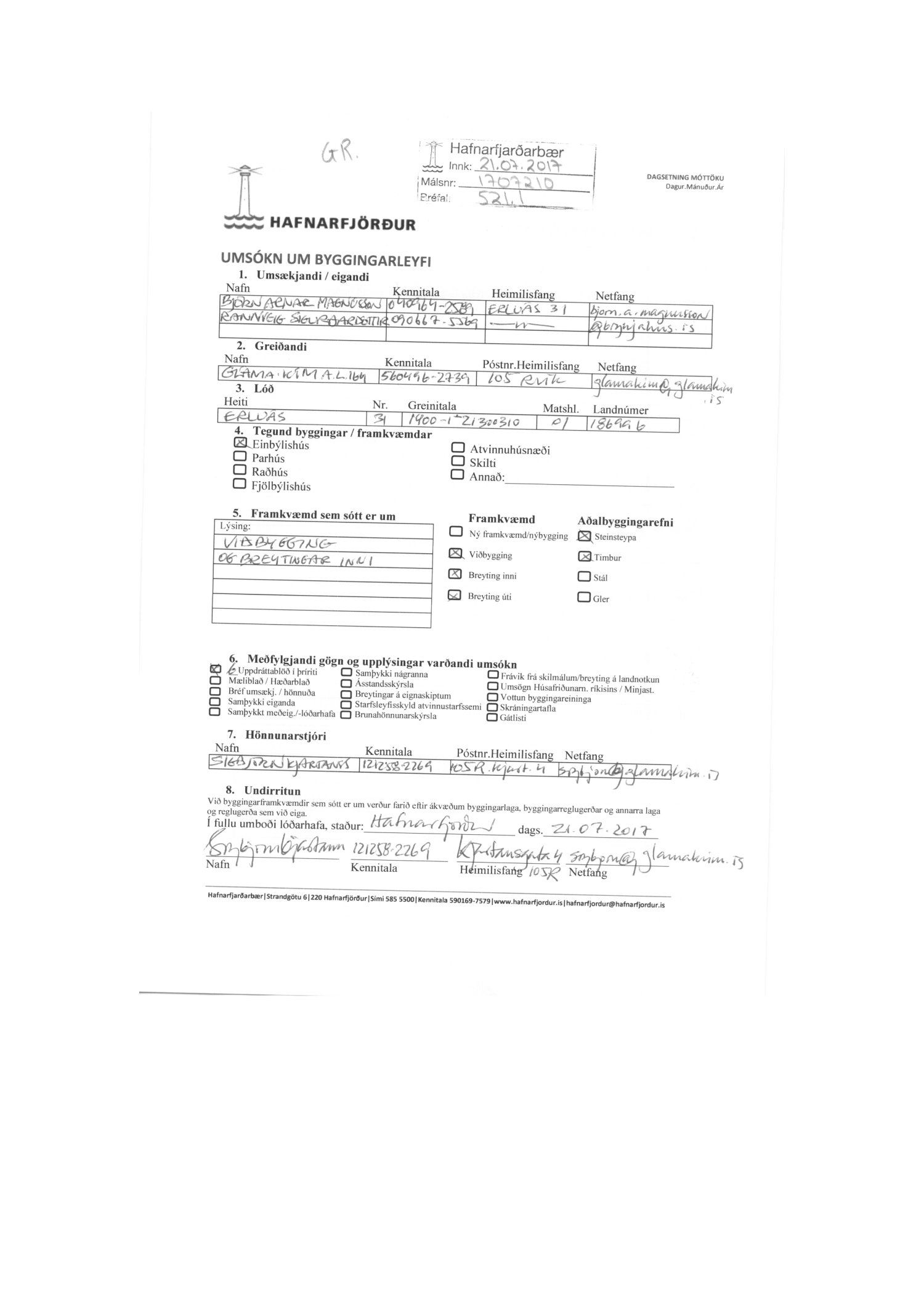Björn Arnar og Rannveig sækja um viðbyggingu og breytingar inni samkvæmt teikningum Sigbjarnar Kjartanssonar dagsettum 21.07.2017. Nýjar teikningar bárust 02.08.2017.