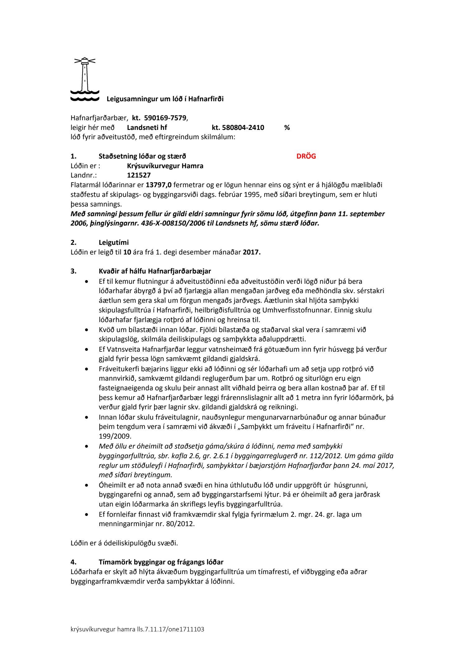 Krýsuvíkurvegur Hamra, lóðarleigusamningur