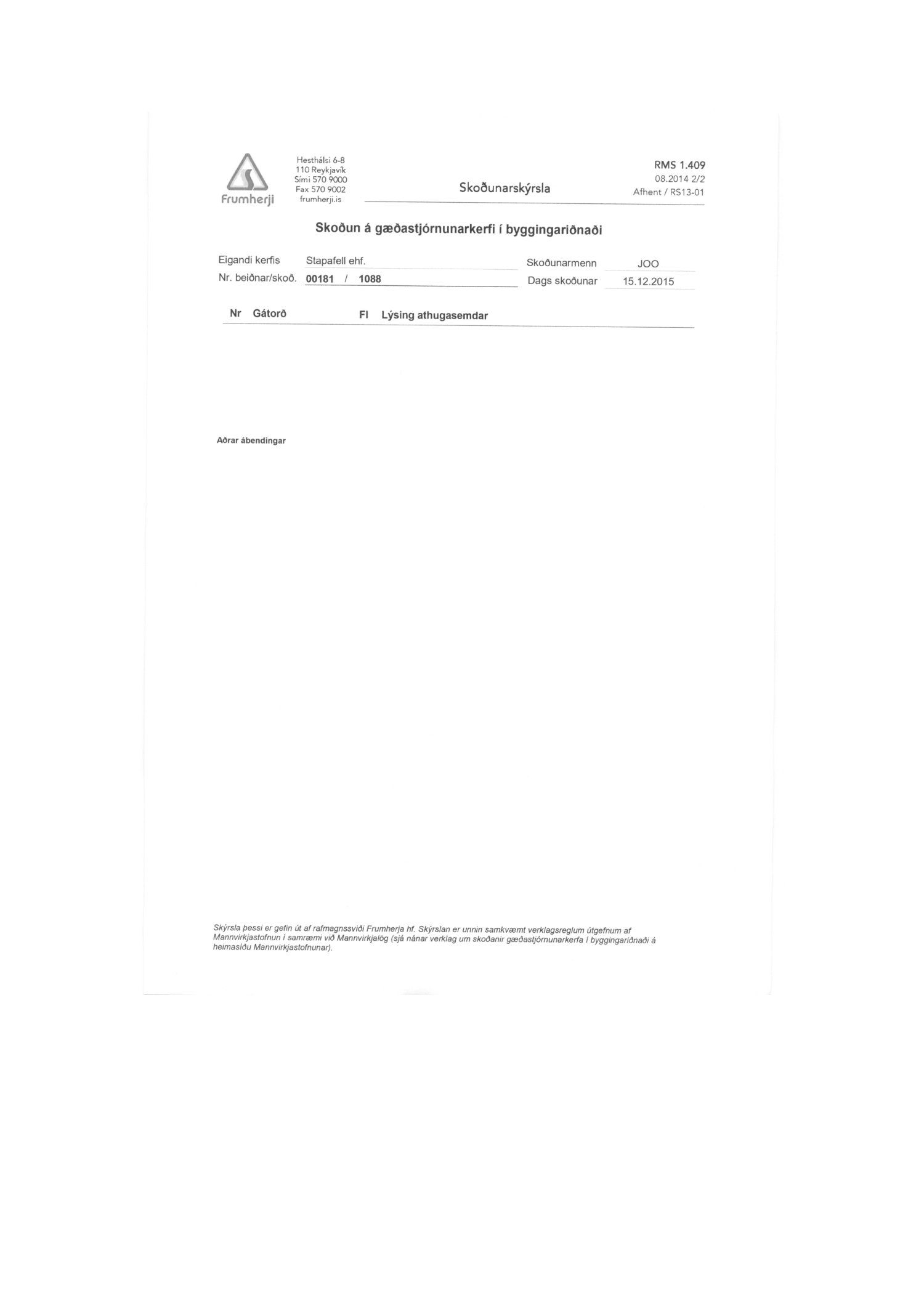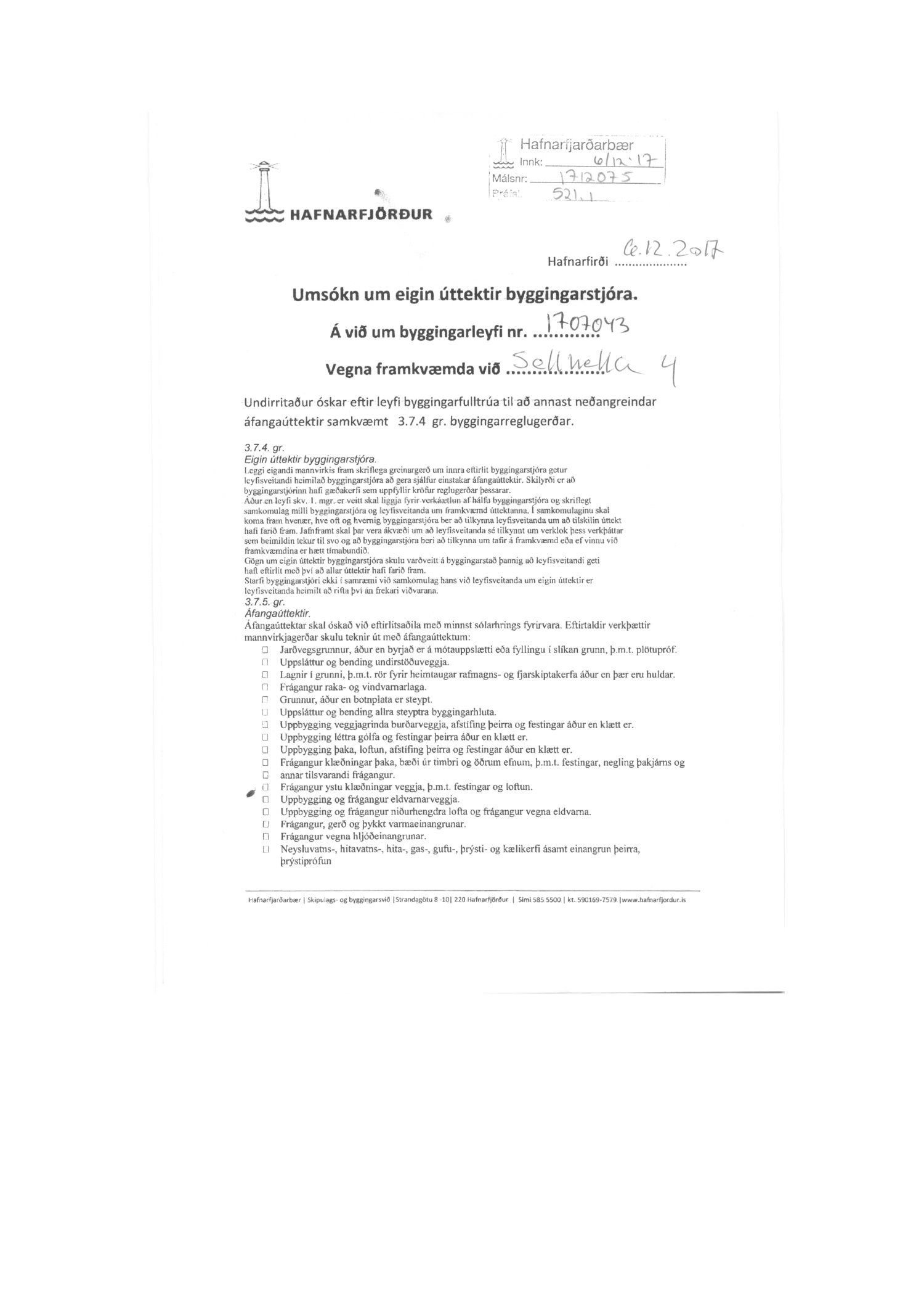 Lúther Ólason byggingarstjóri óskar 06.12.2017 eftir eigin úttektum á Selhellu 4.