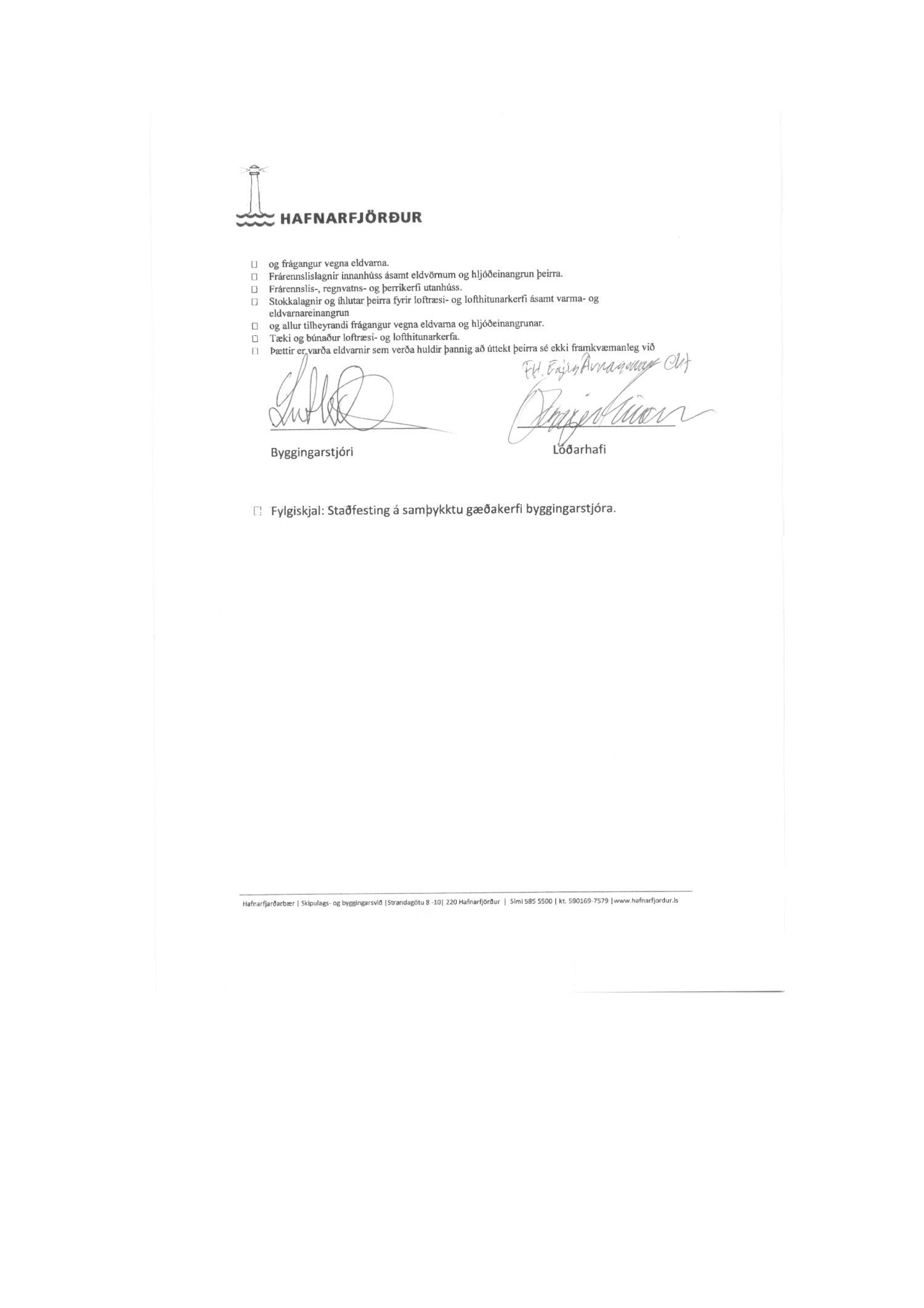 Byggingarfulltrúi samþykkir að byggingarstjóri fái að gera sínar eigin úttektir í samræmi við lög um mannvirki nr.160/2010, steyptar plötur eru undanskildar og sér byggingarfulltrúi um þær úttektir