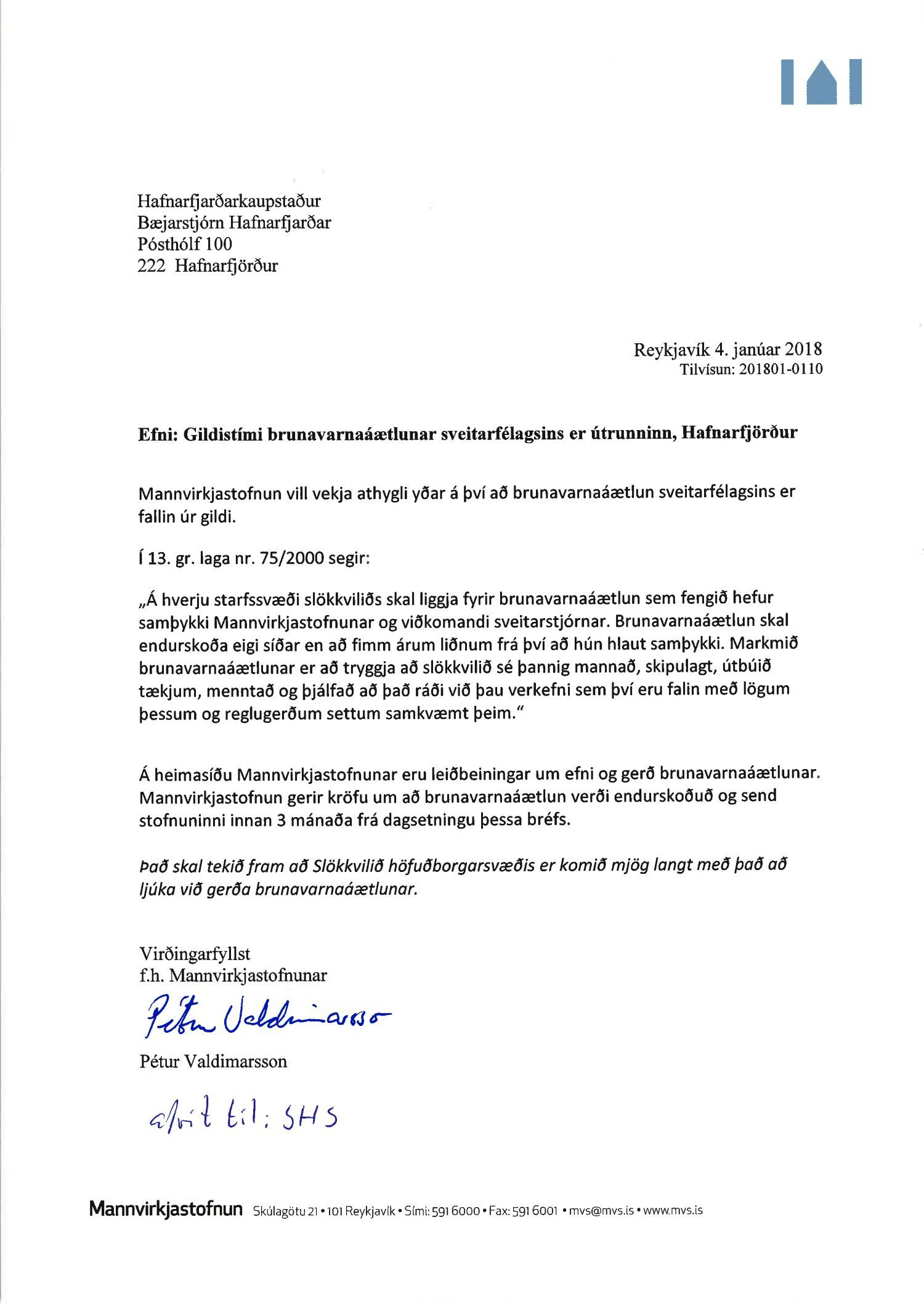 Lagt fram erindi frá Mannvirkjastofnun dags. 4.jan.sl. varðandi brunavarnir sveitarfélagsins.