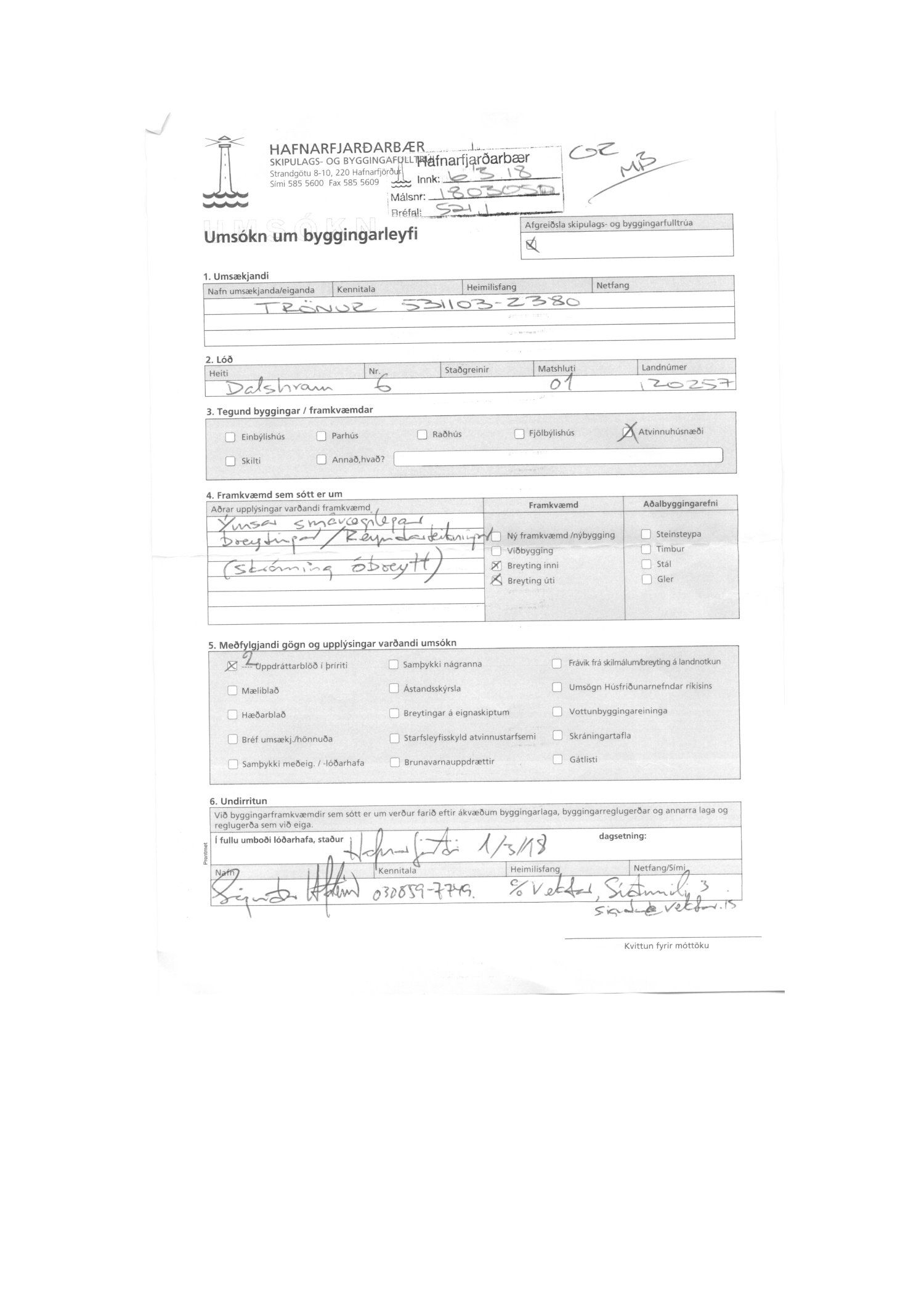Dalshraun 6, breytingar inni og úti, matshluti 01