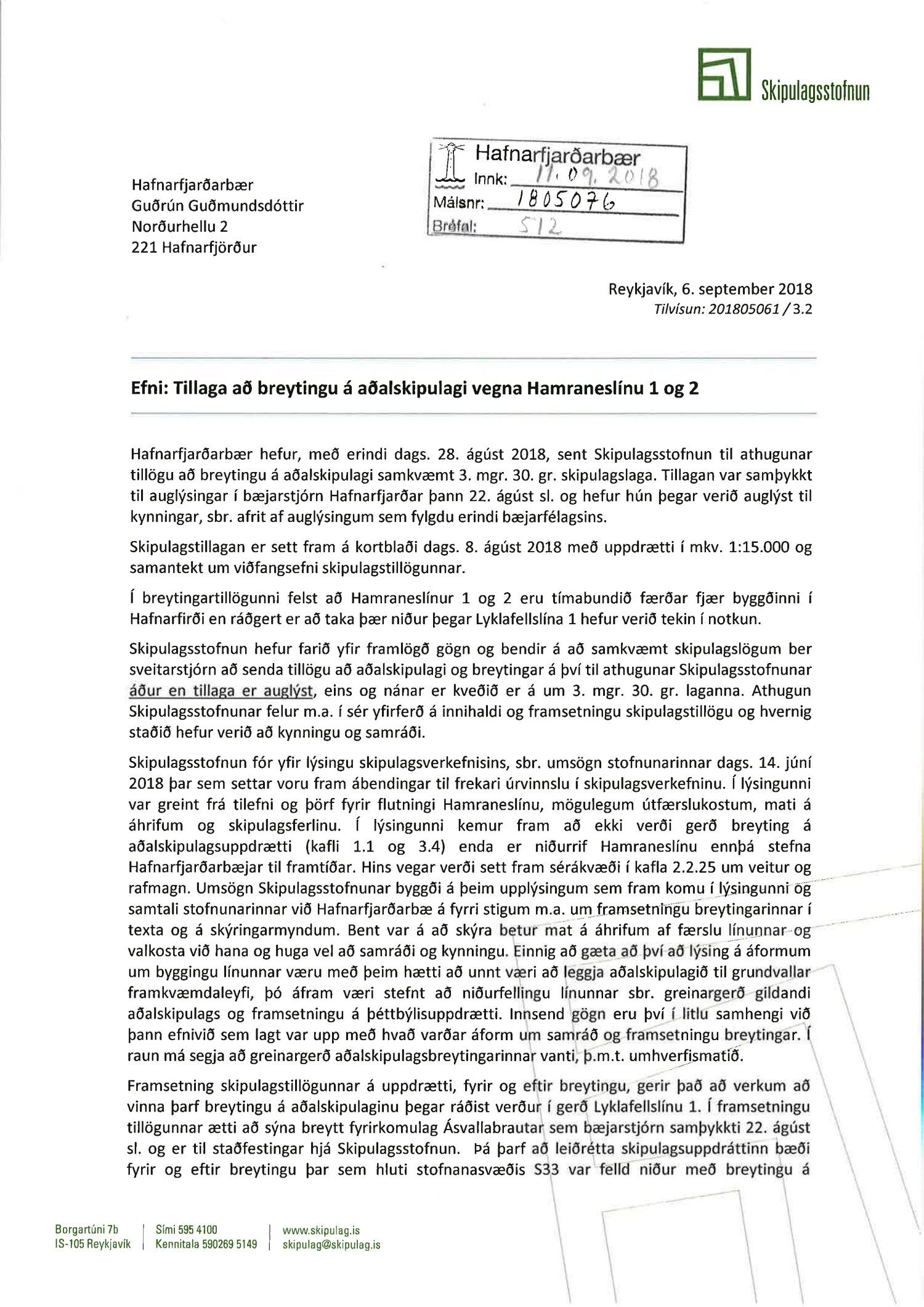 Skipulags- og byggingarráð samþykkir fyrir sitt leyti framlagða lagfærða tillögu að breytingu á aðalskipulagi Hafnarfjarðar 2013-2025 dags. 08.08.2018. Jafnframt er samþykkt að málsmeðferð verði í samræmi við 31.gr. skipulagslaga nr. 123/2010 er varðar breytingu á aðalskipulagi Hafnarfjarðar 2013-2025.