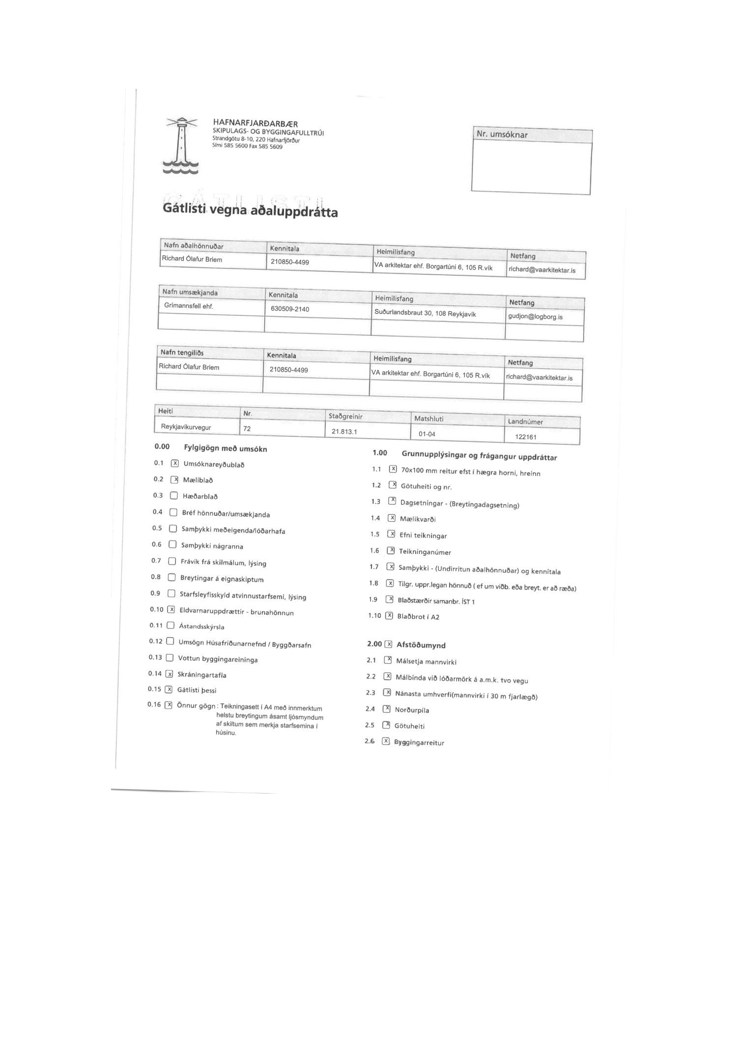Grímansfell ehf. leggur 16.5.2018 inn reyndarteikningar af Reykjavíkurvegur 72, unnar af Richard Briem dagsettar 24.4.2018