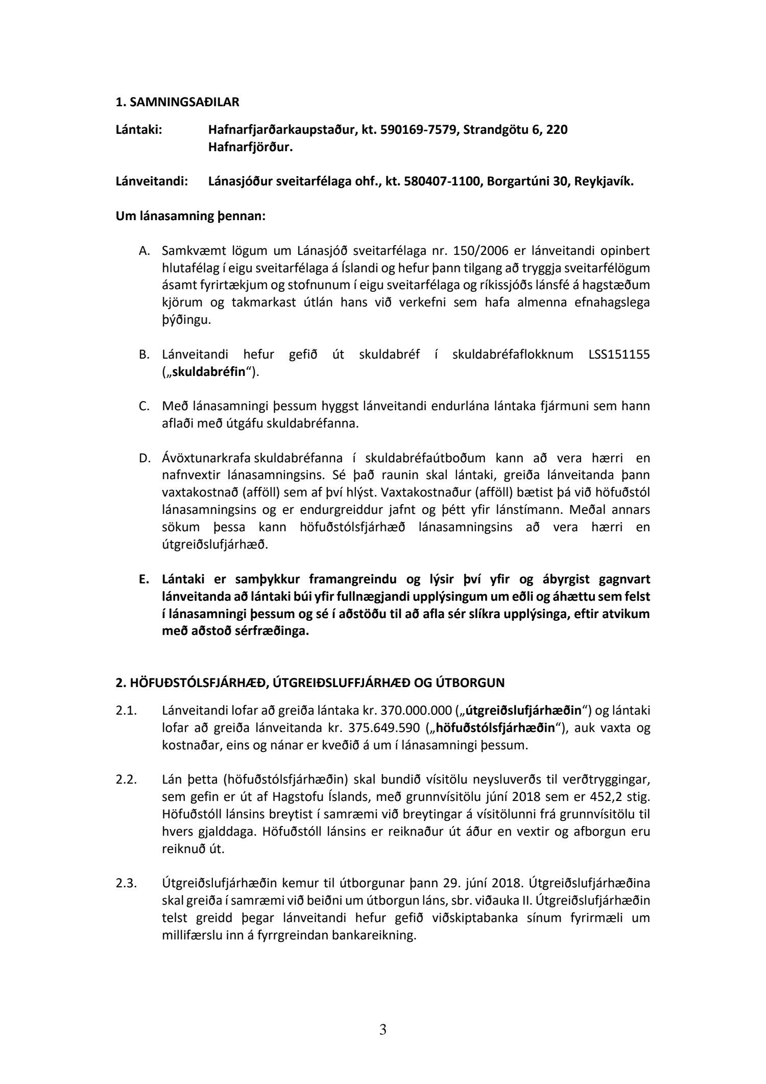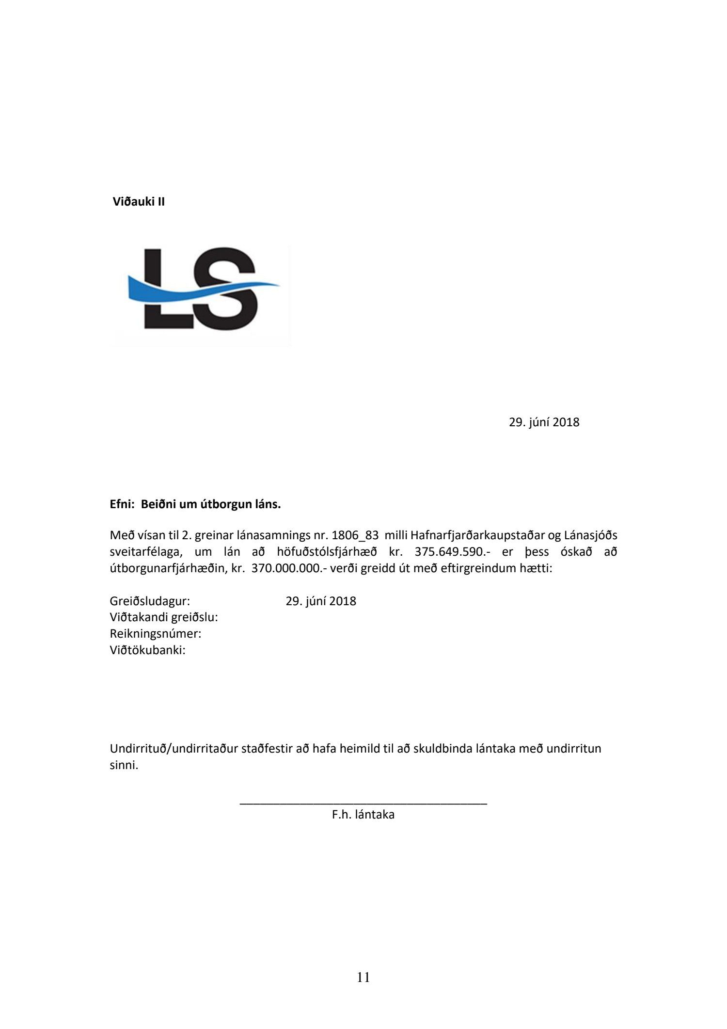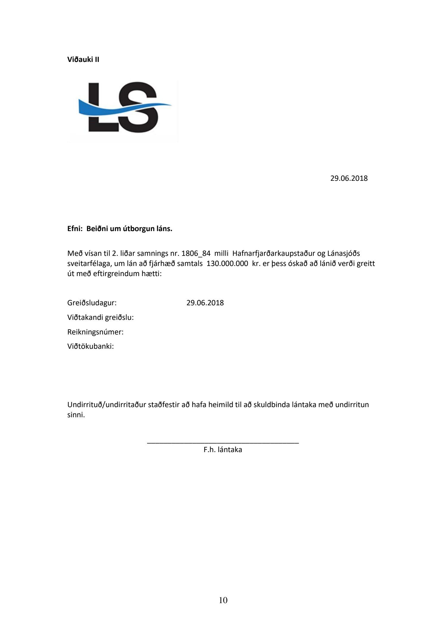 Jafnframt er Rósu Guðbjartsdóttur, kennitala 291165.3899, og Sigríði Kristinsdóttur, kt. 171062-2099 í fjarveru Rósu veitt fullt og ótakmarkað umboð til þess f.h. Hafnarfjarðarkaupstaðar að undirrita lánssamning við Lánasjóð sveitarfélaga sbr. framangreint, sem og til þess að móttaka, undirrita og gefa út, og afhenda hvers kyns skjöl, fyrirmæli og tilkynningar, sem tengjast lántöku þessari.