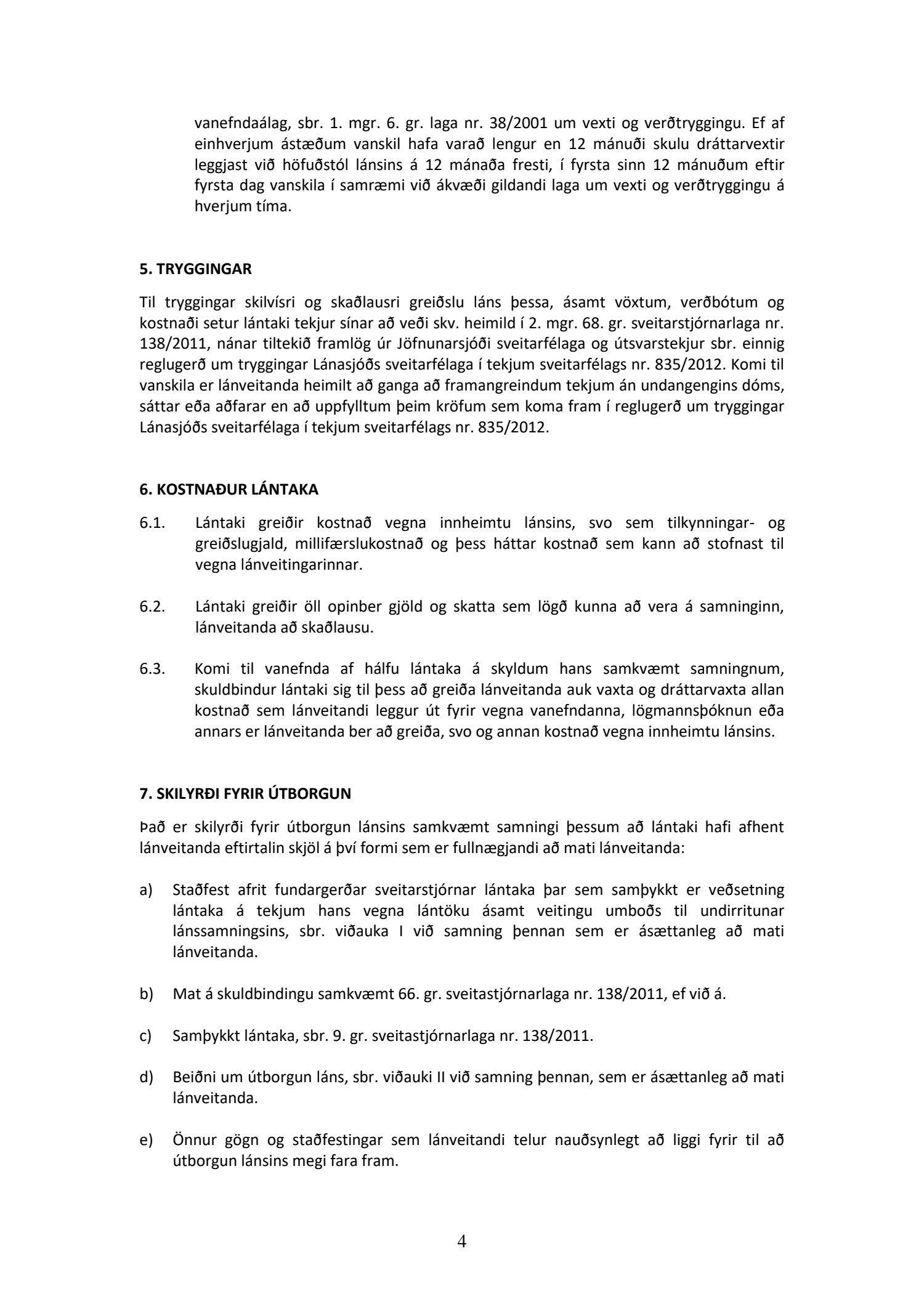 Til tryggingar lánunum standa tekjur sveitarfélagsins, sbr. heimild í 2. mgr. 68. gr. sveitarstjórnarlaga nr. 138/2011.