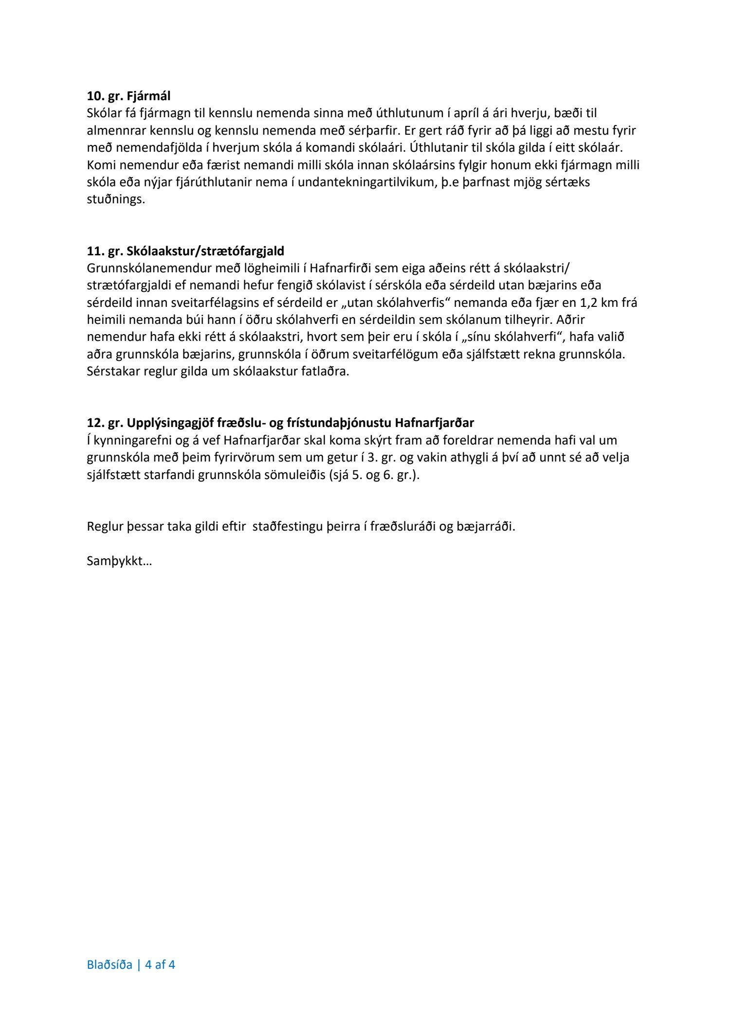 Bæjarstjórn samþykkir samhljóða með 9 greiddum atkvæðum fyrirliggjandi verklagsreglur. Þau Friðþjófur Helgi Karlsson og Adda María Jóhannsdóttir sitja hjá við atkvæðagreiðsluna og þau gera jafnframt grein fyrir hjásetu sinni.