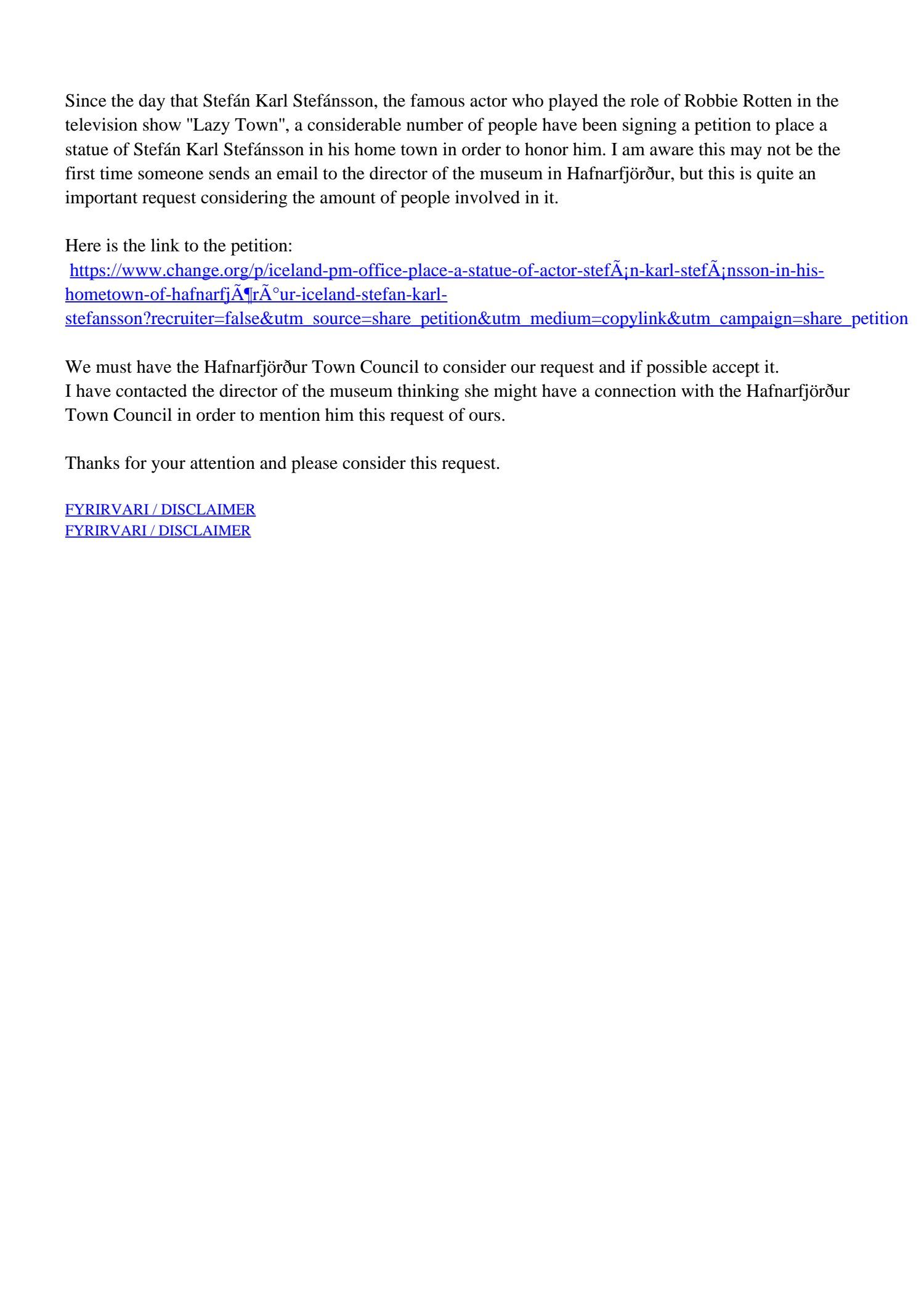 FW: Place a Statue of actor Stefán Karl Stefánsson in his hometown of Hafnarfjörður, Iceland..pdf