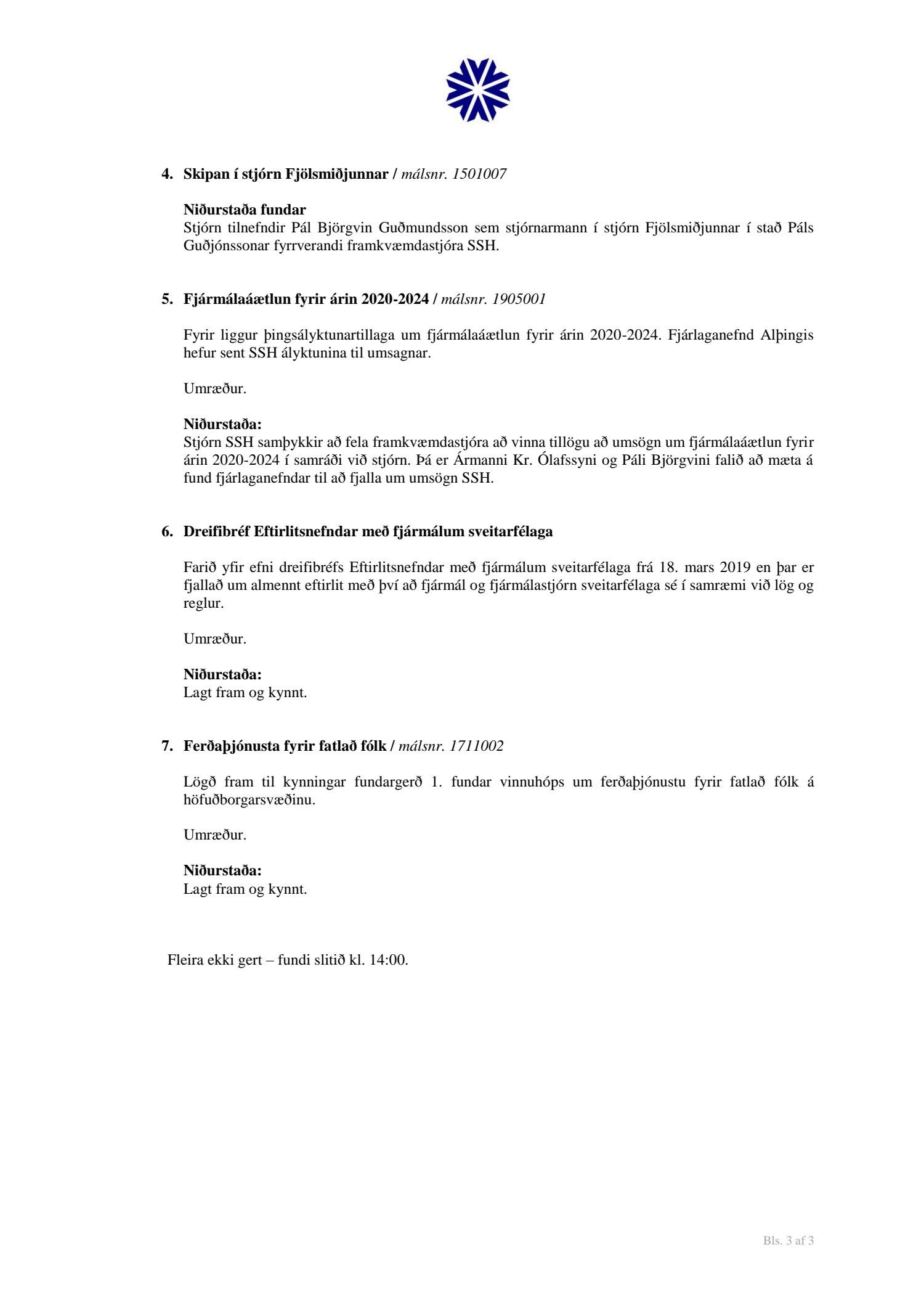 Stjórn SSH, fundargerðir 2019