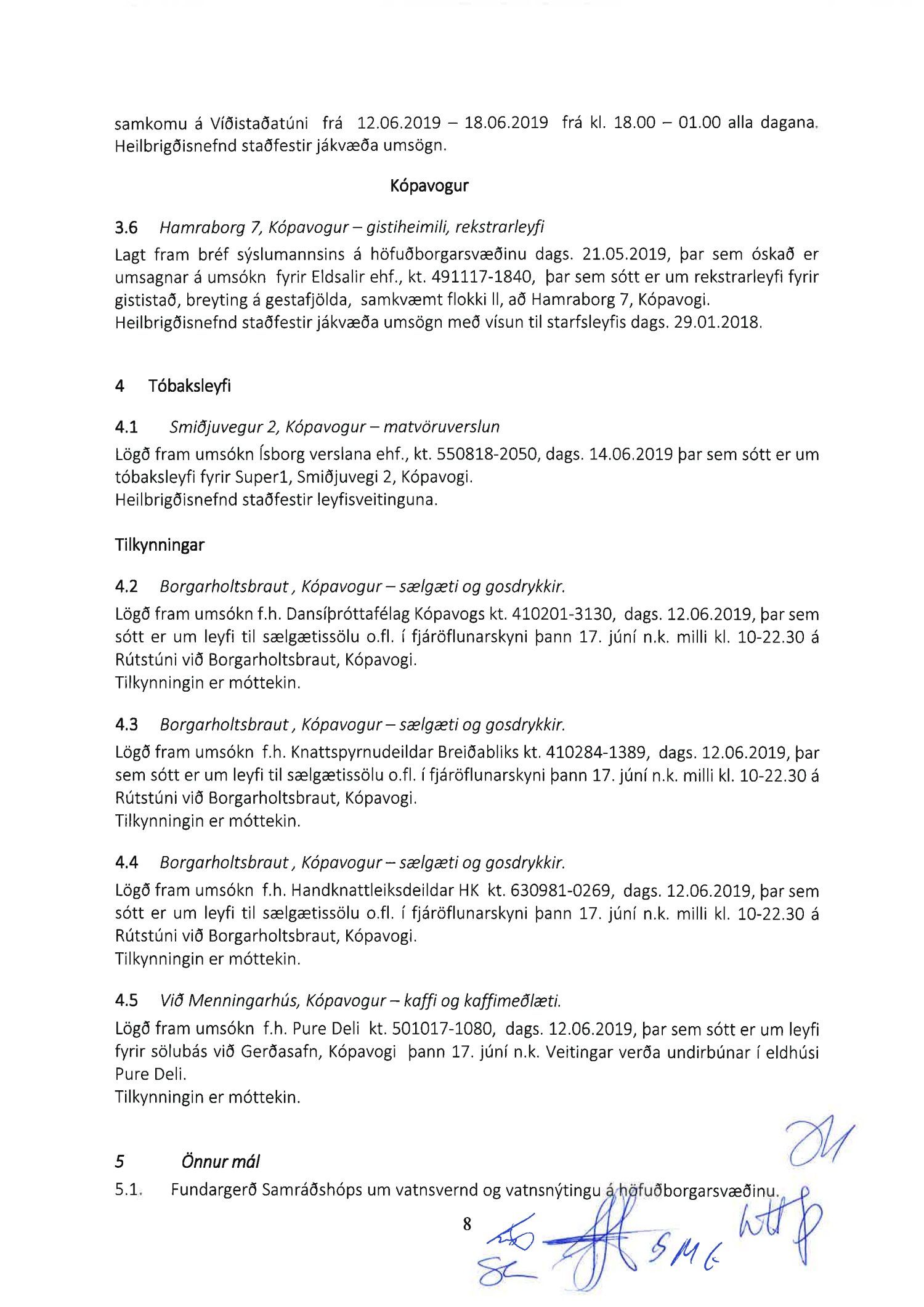Heilbrigðiseftirlit Hafnarfjarðar- og Kópavogssvæðis, fundargerðir 2019