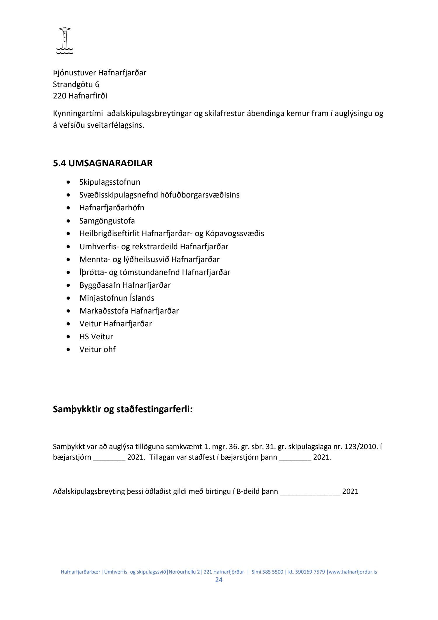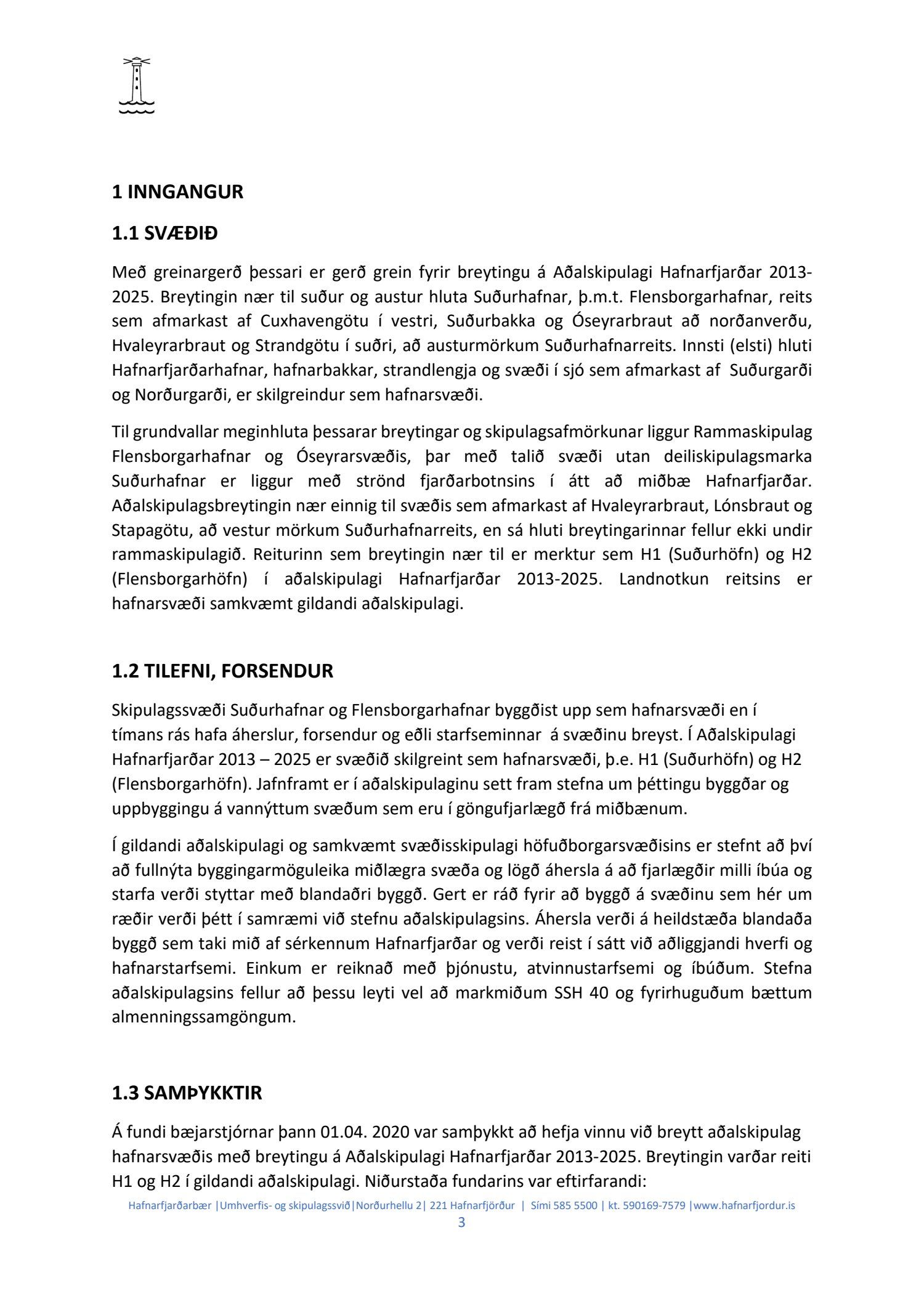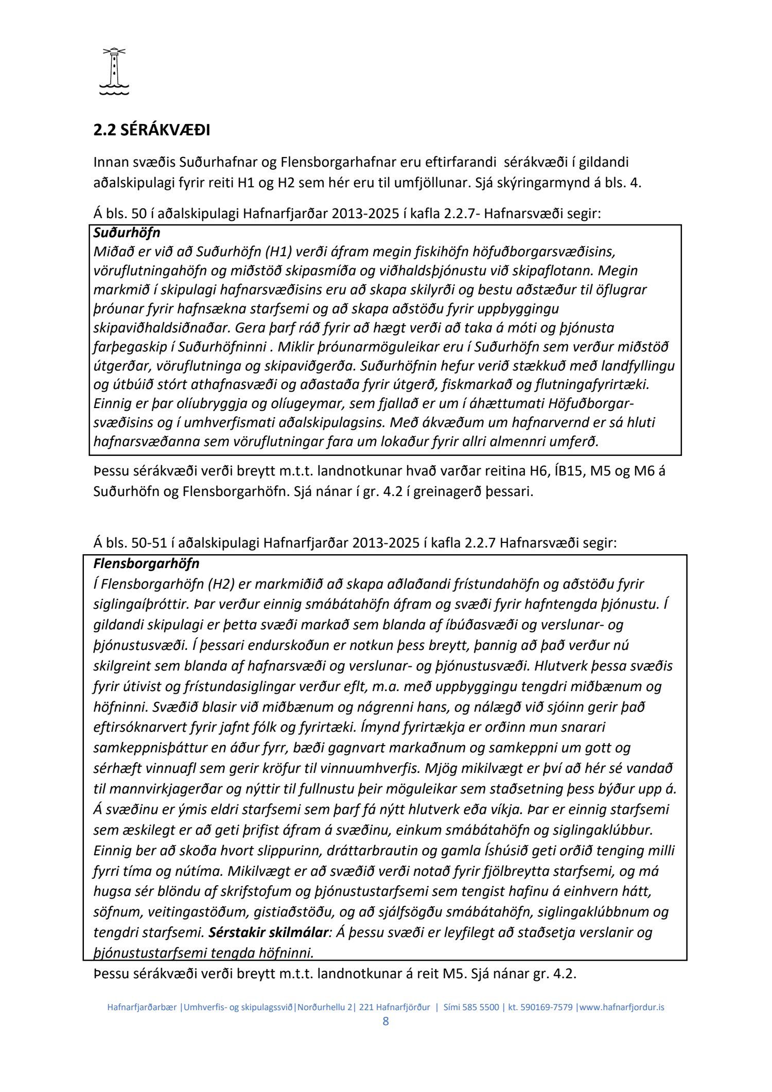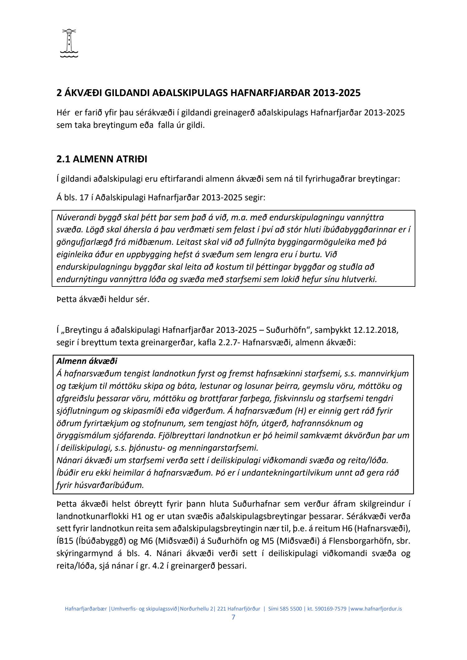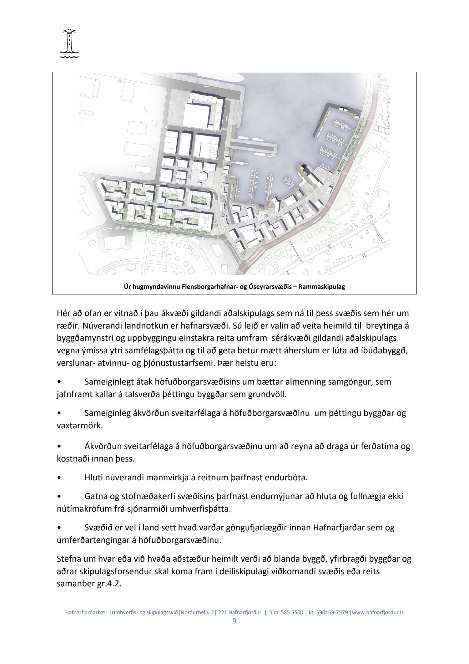 Hafnarstjórn lagði þann 24.2.2021 til endurskoðun á þeim þætti skipulagsins sem snýr að innri höfninni með vísan til Hafnarreglugerðar fyrir Hafnarfjarðarhöfn og vísaði málinu til frekari yfirferðar hjá skipulags- og byggingarráði. Lögð fram uppfærð greinargerð og uppdráttur aðalskipulagsbreytingar.