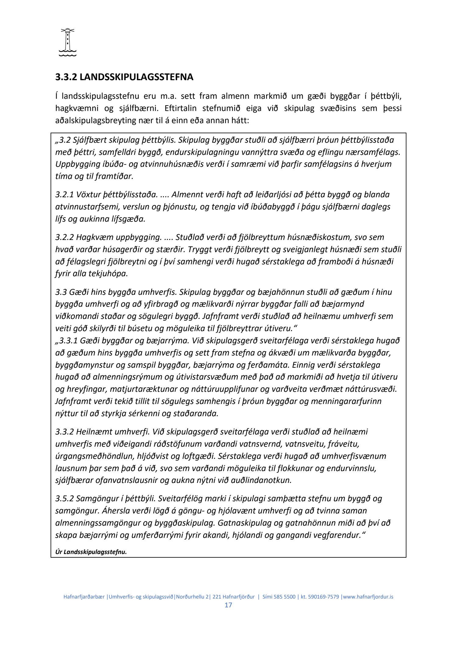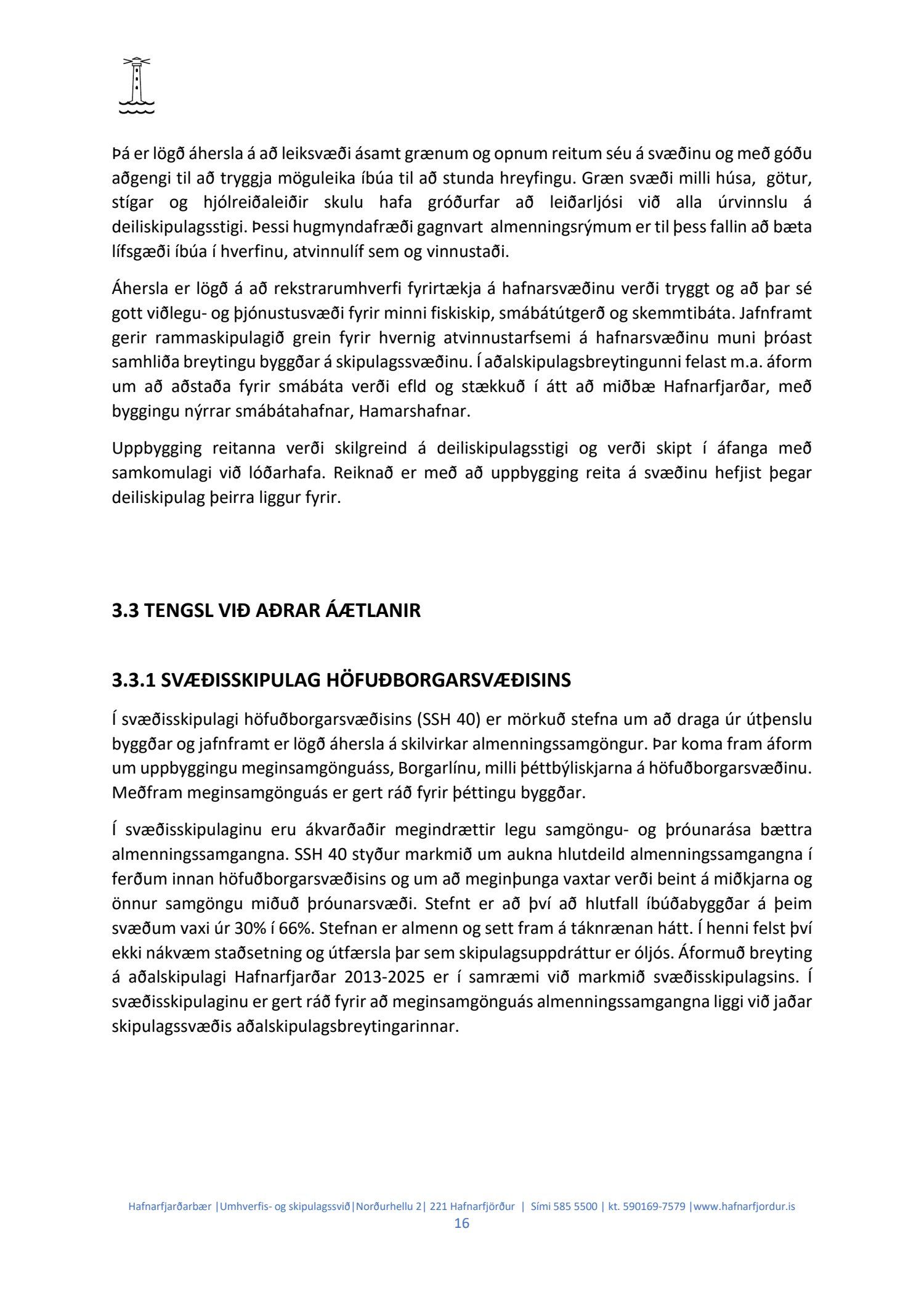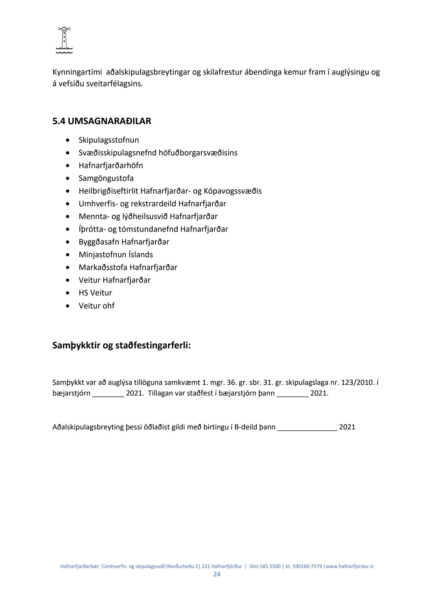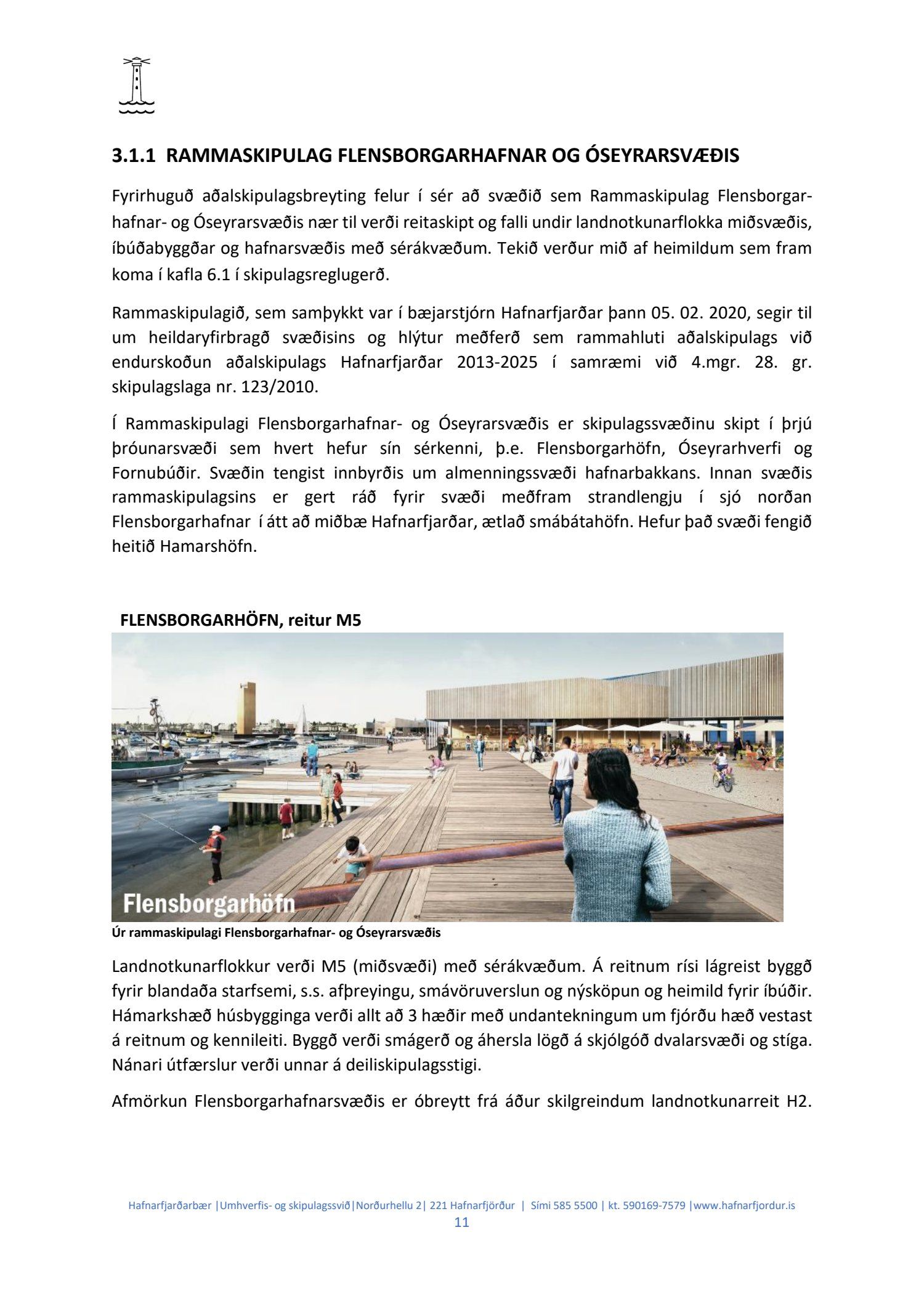 Hafnarstjórn lagði þann 24.2.2021 til endurskoðun á þeim þætti skipulagsins sem snýr að innri höfninni með vísan til Hafnarreglugerðar fyrir Hafnarfjarðarhöfn og vísaði málinu til frekari yfirferðar hjá skipulags- og byggingarráði. Lögð fram uppfærð greinargerð og uppdráttur aðalskipulagsbreytingar.