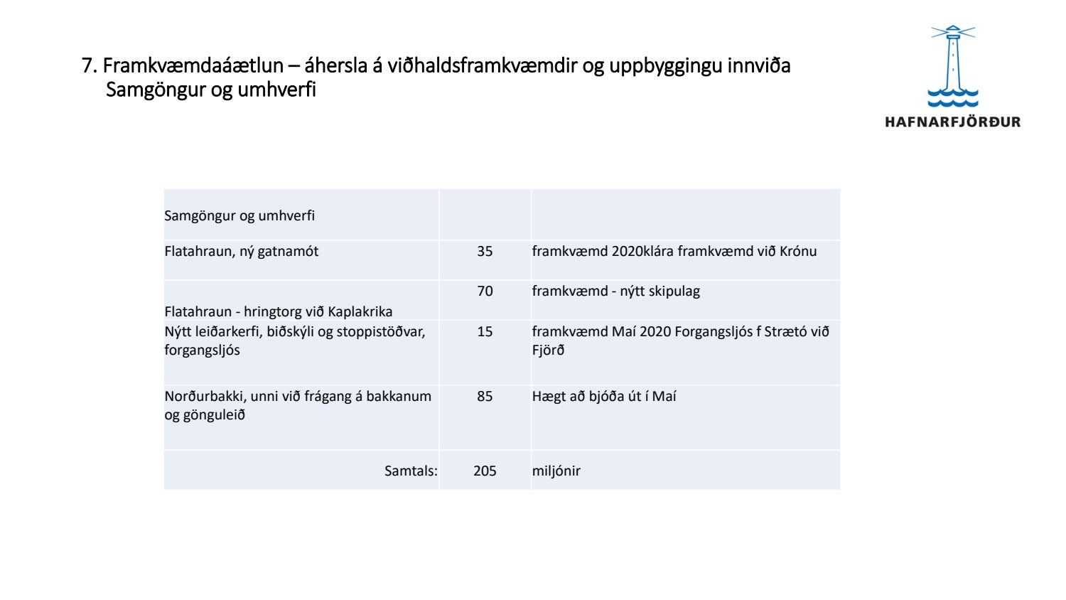 Bæjarráð samþykkir að farið verði í eftirtalin flýtiframkvæmdaverkefni að tillögu Umhverfis- og framkvæmdaráðs: Flatahraun, ný gatnamót; Flatahraun-hringtorg við Kaplakrika, Álfaberg-lokun á rými, Víðistaðaskóli-gardínur og Suðurbæjarlaug, þak. Um er að ræða kostnað upp á alls 203,5 milljónir króna.
