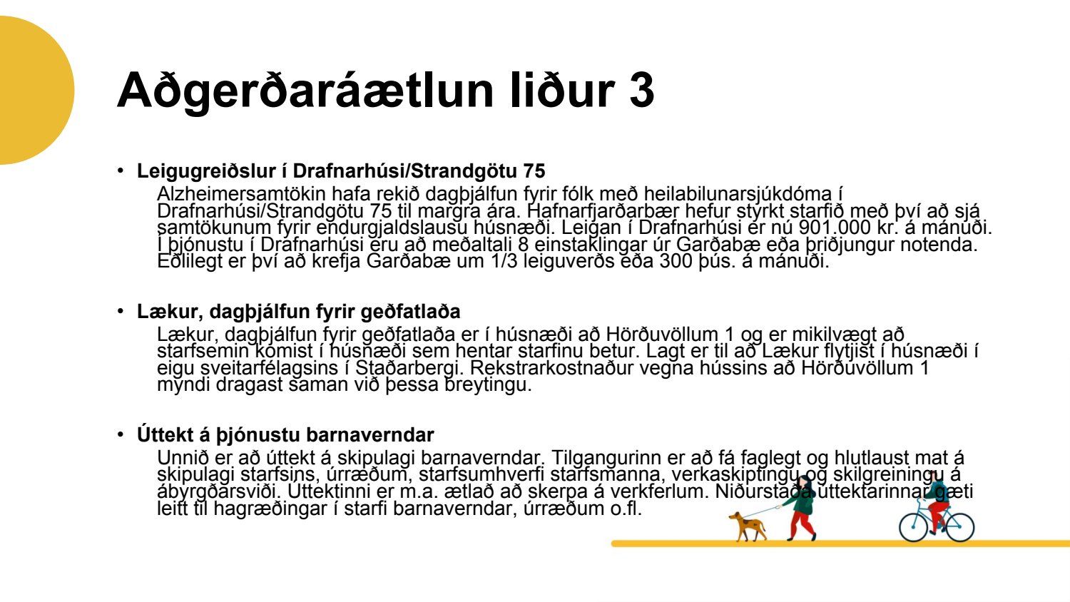 Í Drafnarhúsi/Strandgötu 75 er rekin dagdvöl fyrir fólk með heilabilunarsjúkdóma. Þar eru 24 rými. Hafnarfjarðarbær hefur greitt leiguna óháð því hvort þjónustuþegar eru með lögheimili í Hafnarfirði eða ekki. Lagt er til að þau sveitarfélög sem nýta þjónustuna í Drafnarhúsi greiði leigu í hlutfalli við fjölda þjónustuþega.