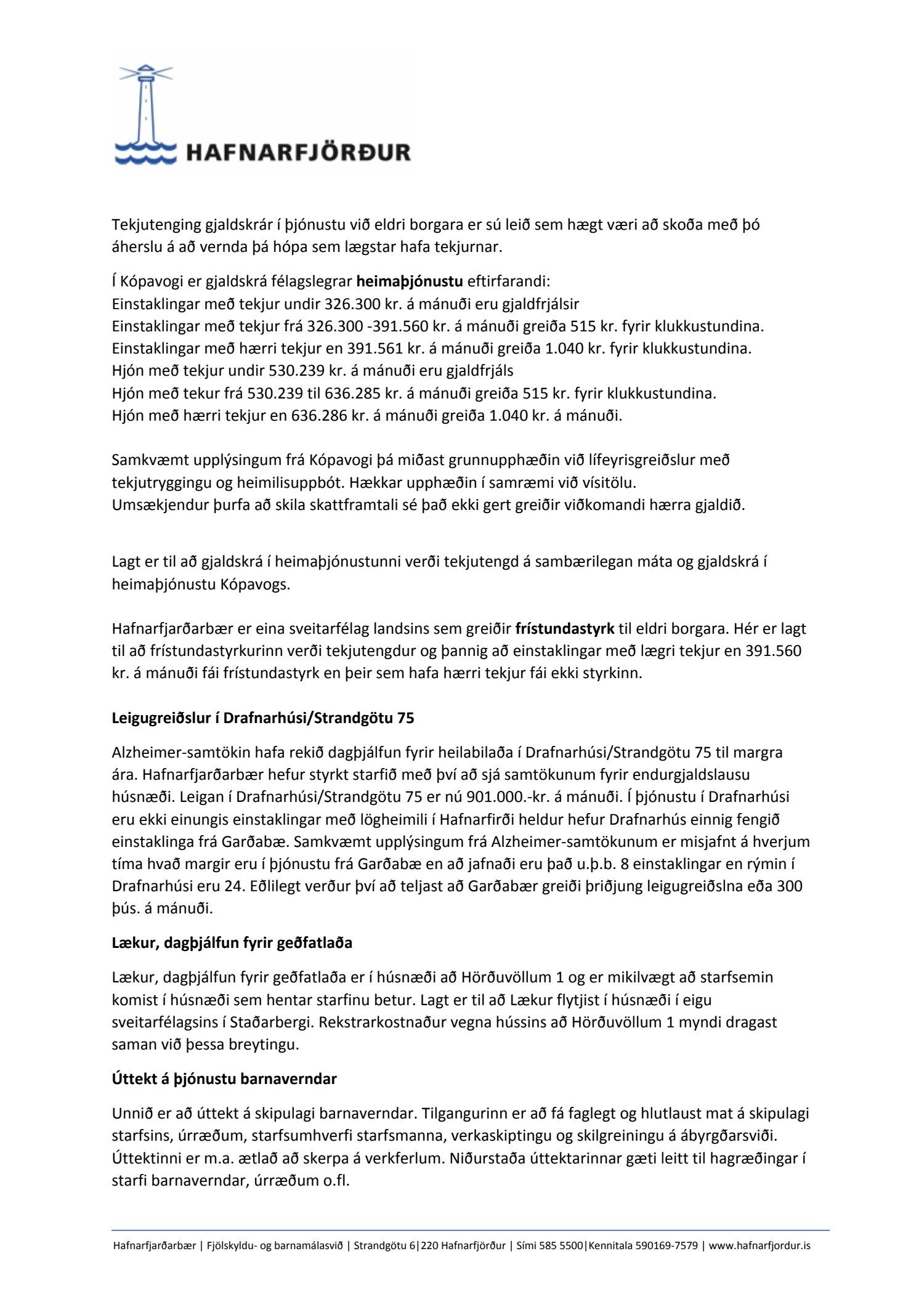 Þessi breyting á gjaldskrá er til þess að verja viðkvæmustu hópana. Þeir sem hafa lægstu tekjurnar greiða minnst fyrir þjónustuna, þeir sem hafa hærri tekjur borga meira. Þessi breyting er einnig afar kærkomin fyrir hóp þjónustuþega sem eru með tekjur frá 326.300 kr. til 391.560 kr. Þeir borga í dag 757 kr. fyrir þjónustuna en eftir breytingu borga þeir 515 kr. fyrir þjónustuna.