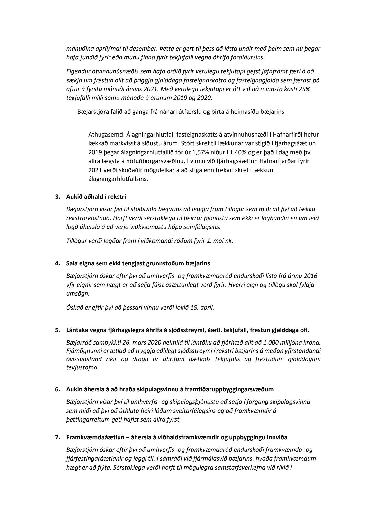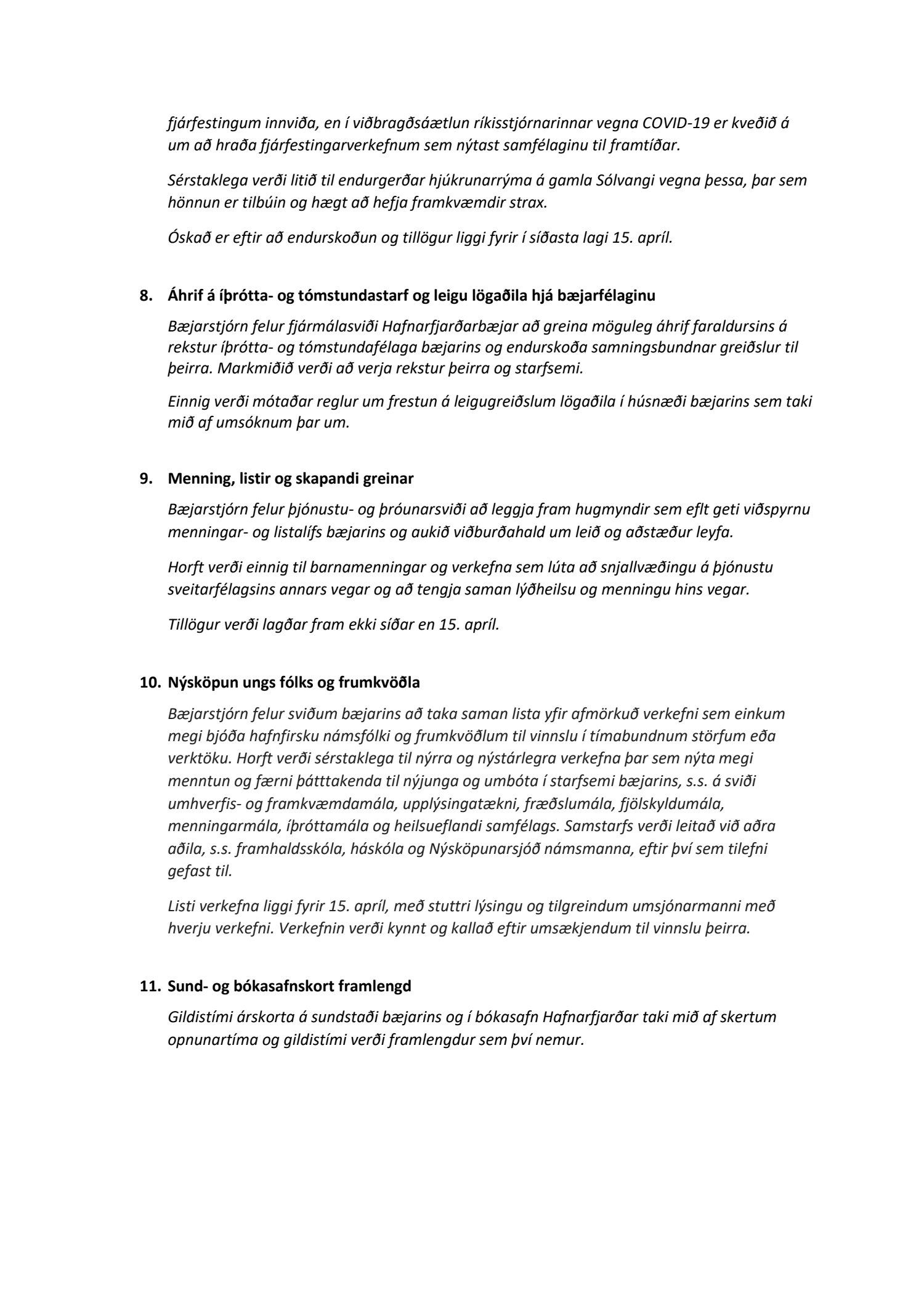 Bæjarráð samþykkir að heimilt verði að fella niður leigu yfir það tímabil sem samkomubann varir í þeim tilfellum sem aðilar verða fyrir verulegu tekjutapi. Beiðni ásamt rökstuðningi skal send á fjárreiðudeild Hafnarfjarðar fjarreidudeild@hafnarfjordur.is.