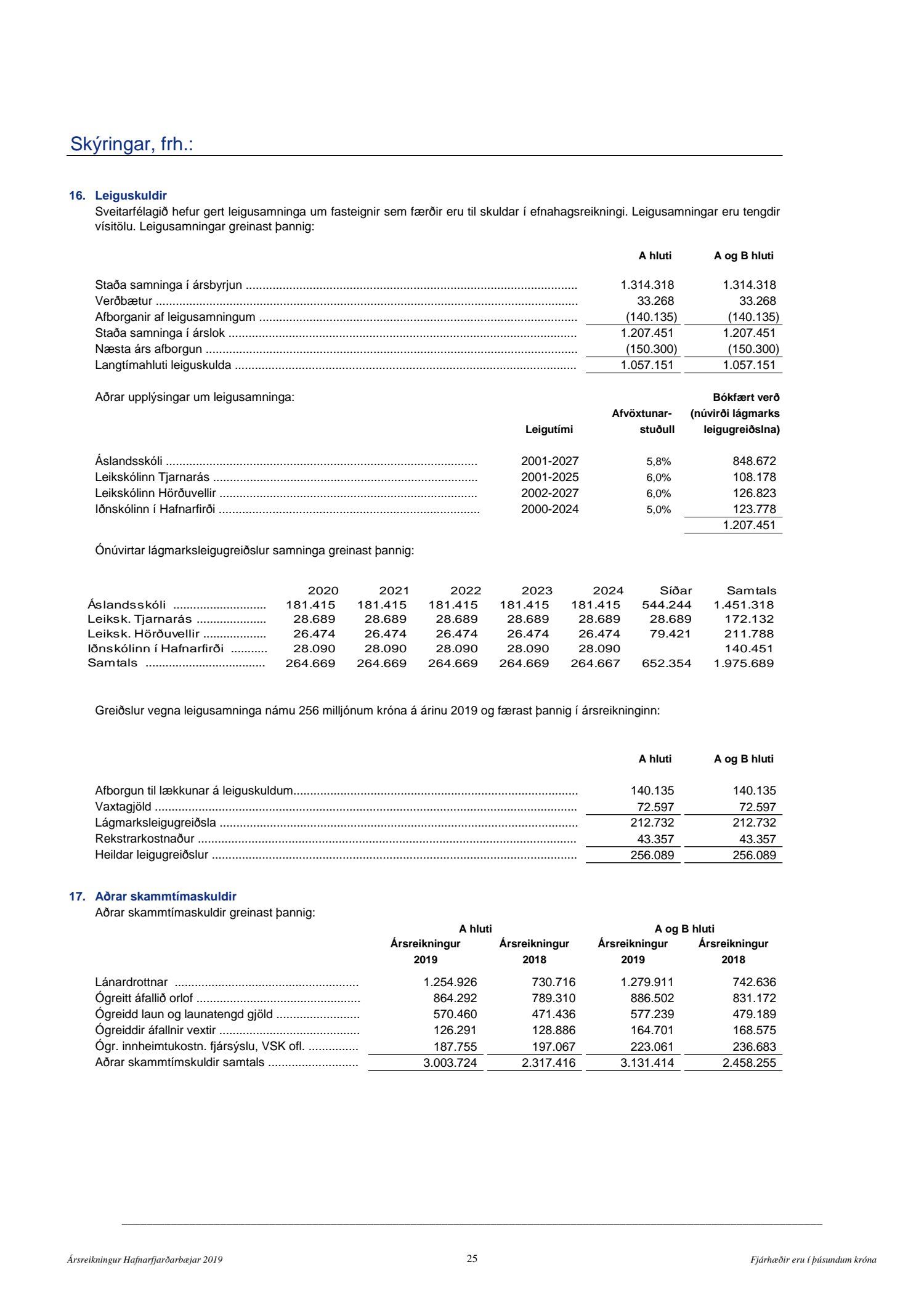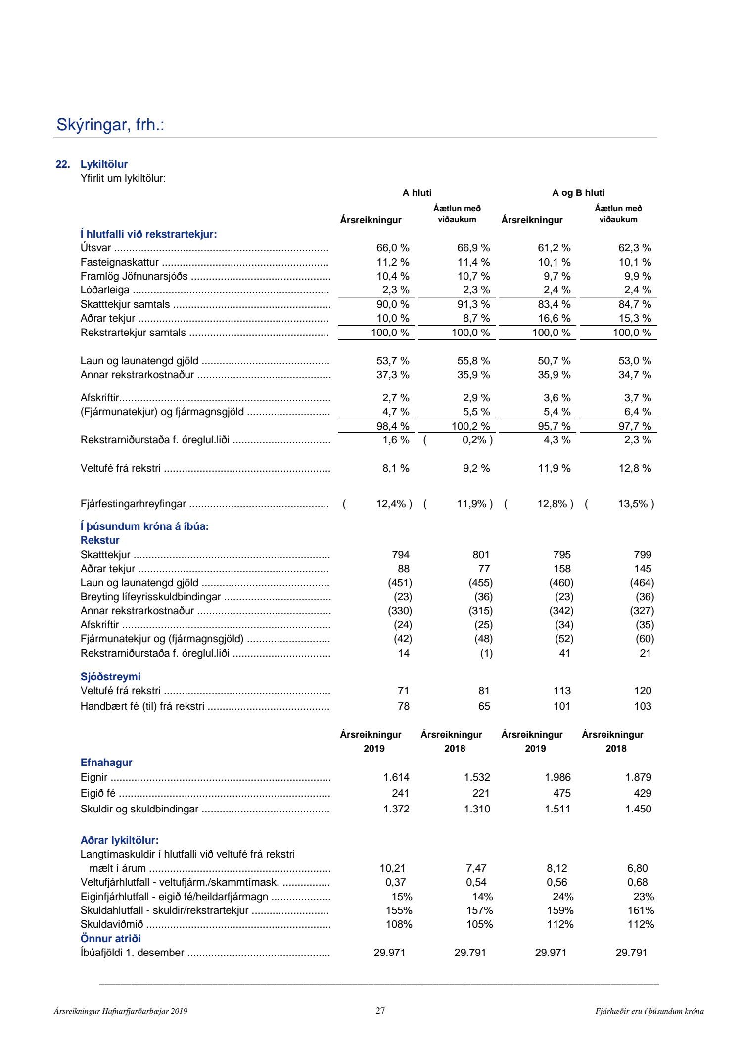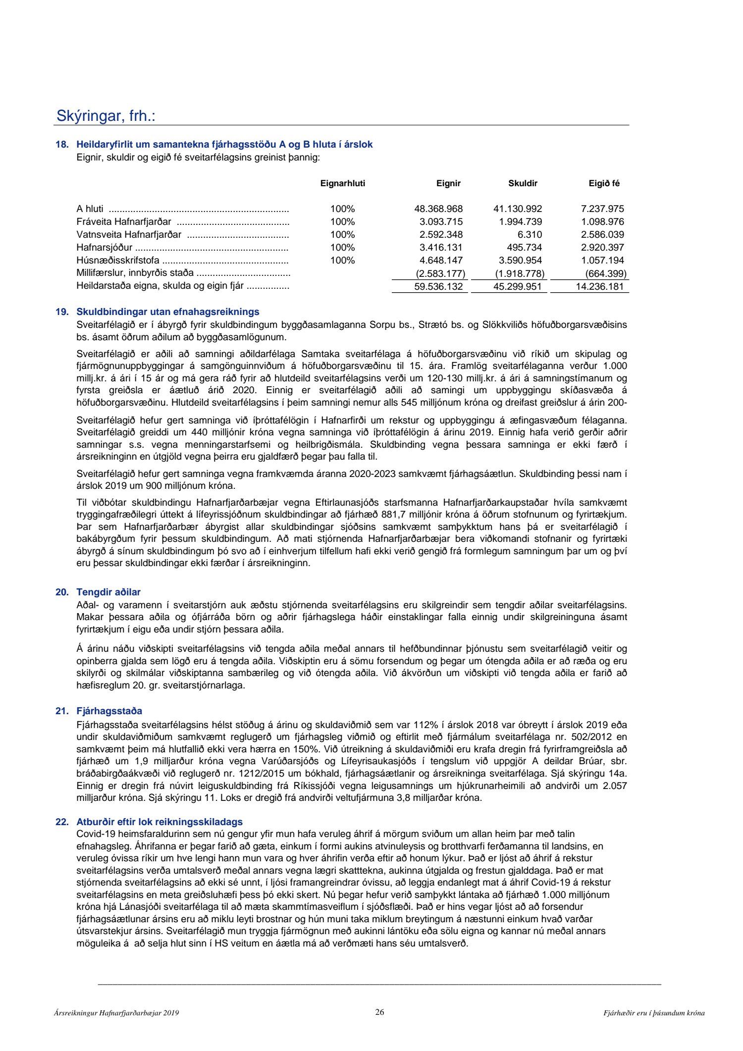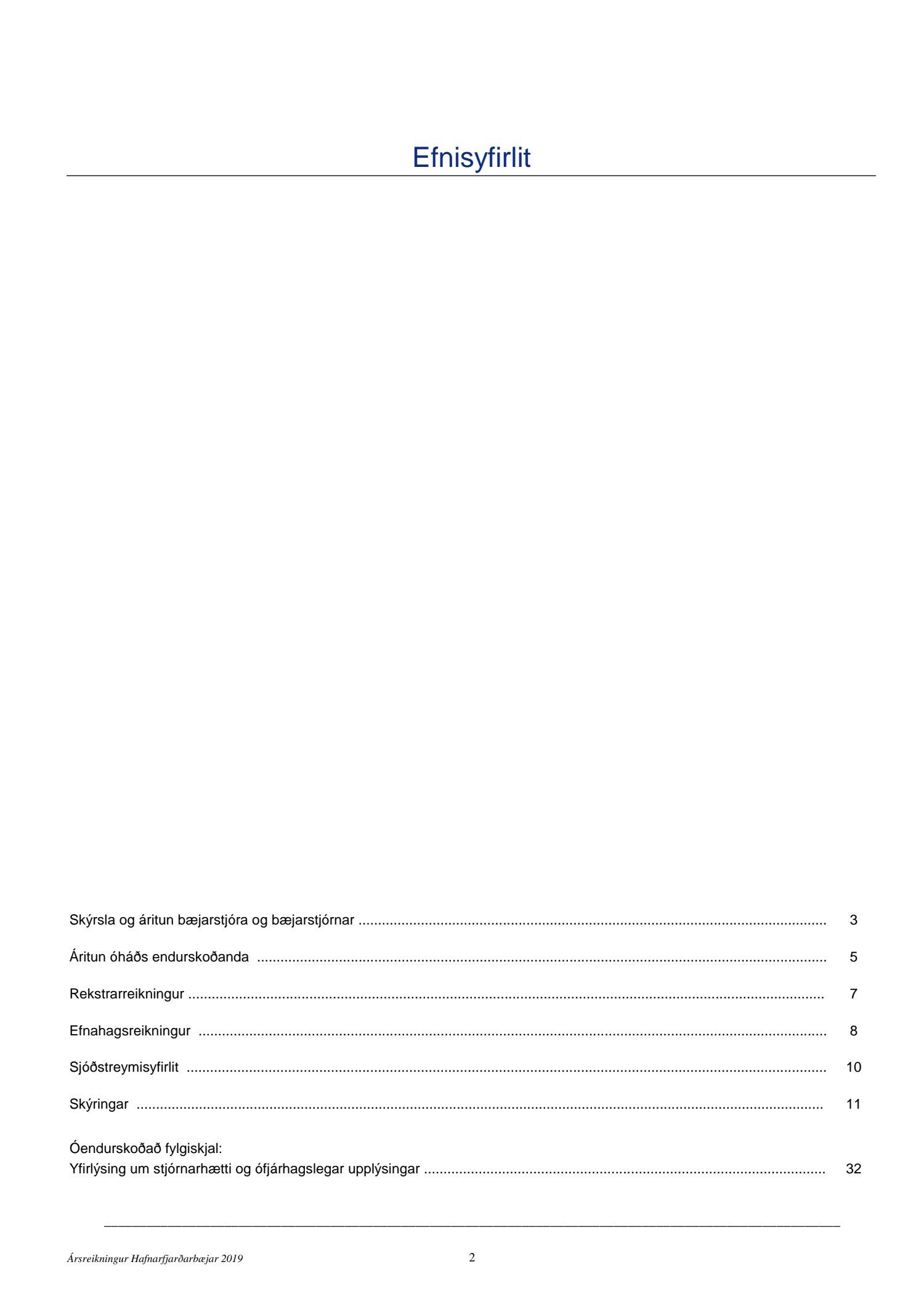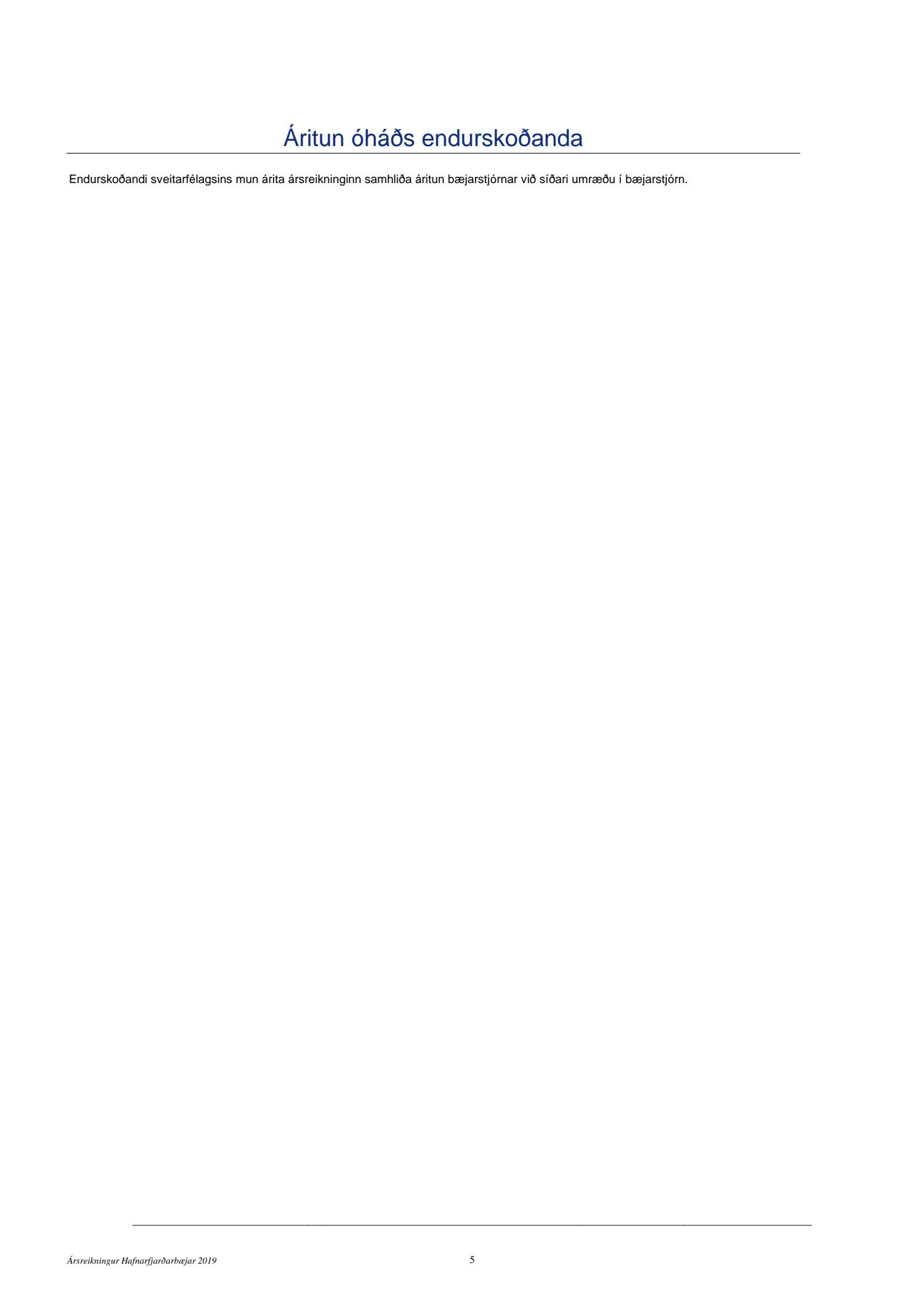 Við fyrstu skoðun lítur ársreikningur ársins 2019 þokkalega út, enda ágætt samræmi milli niðurstöðu og áætlana (með viðaukum). Ef betur er að gáð sést þó að skuldir aukast, veltufé frá rekstri lækkar, veltufjárhlutfall sömuleiðis. Óháð Covid-19 mætti því með réttu álykta að frekari lántaka væri nauðsynleg í nánustu framtíð. Kröpp staða um áramót sem kallaði á aukinn yfirdrátt og aukin lántaka úr Hafnarsjóði bendir í sömu átt.